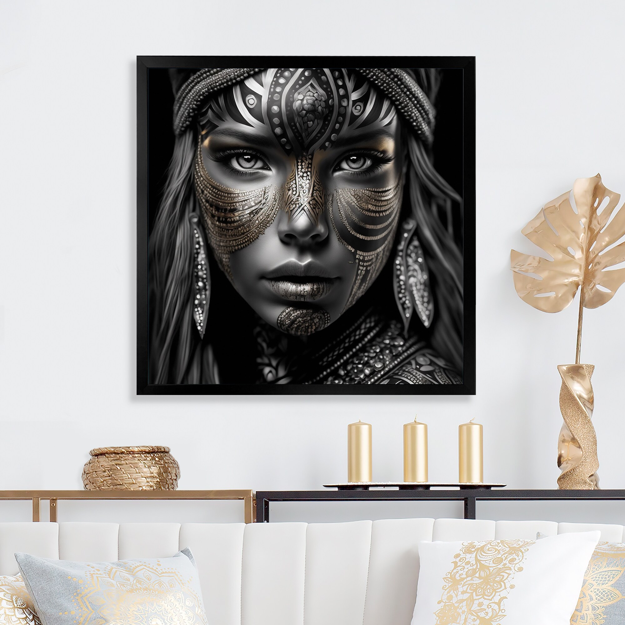 Designart "Black And White Bohemian Woman IV" Boho Woman Framed Art Print