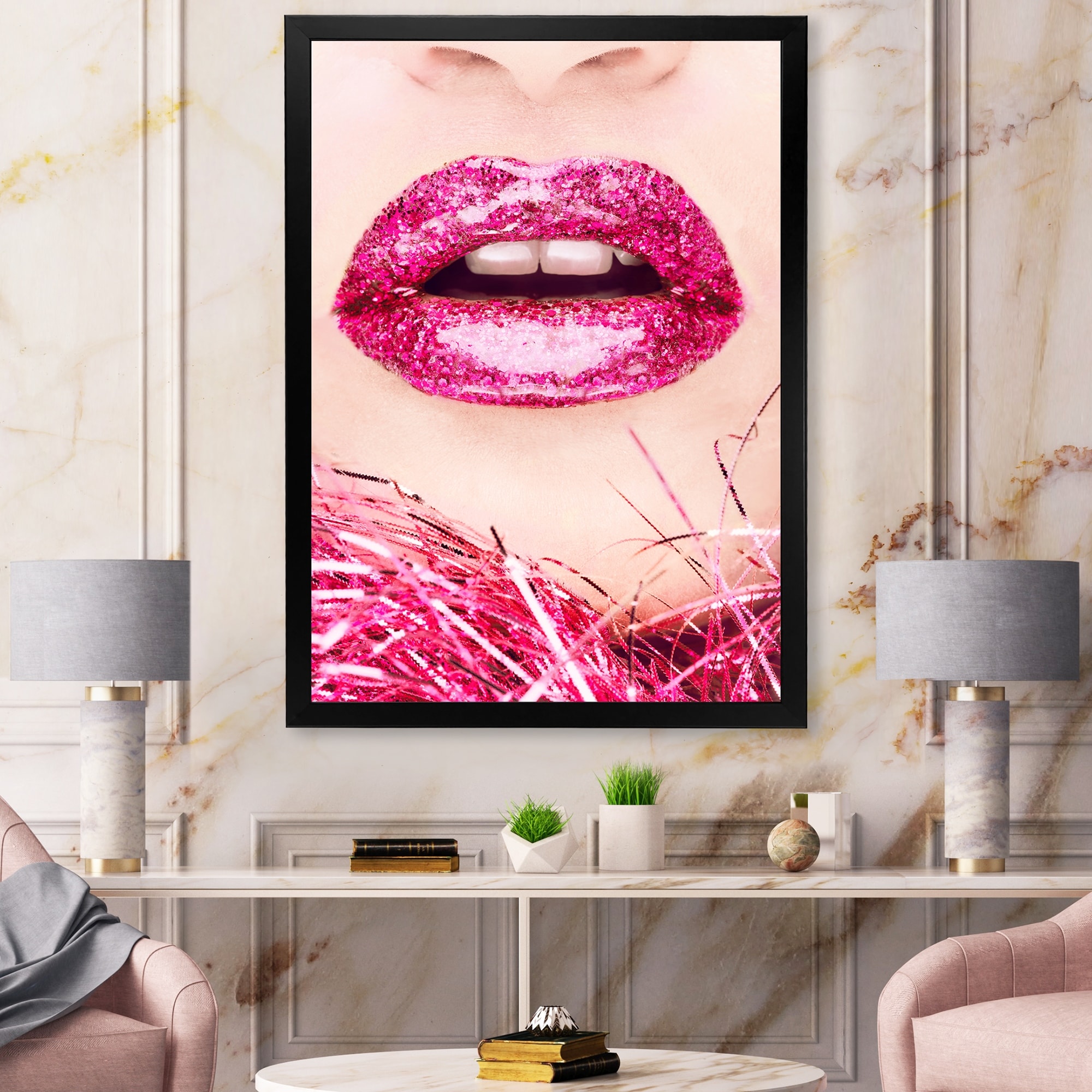 Designart "Sensual Lips of Glamour Woman Portrait V" Glam Framed Art Print