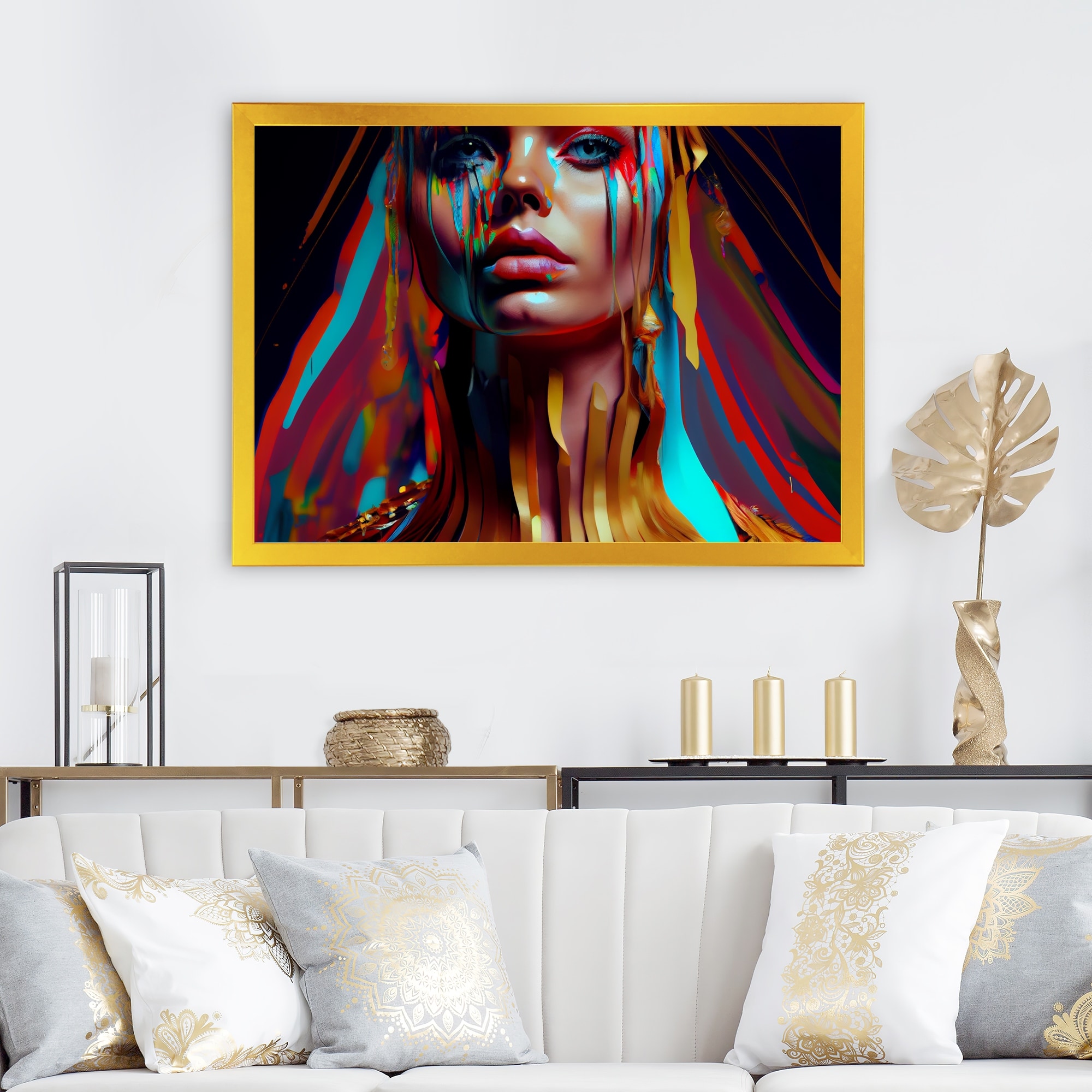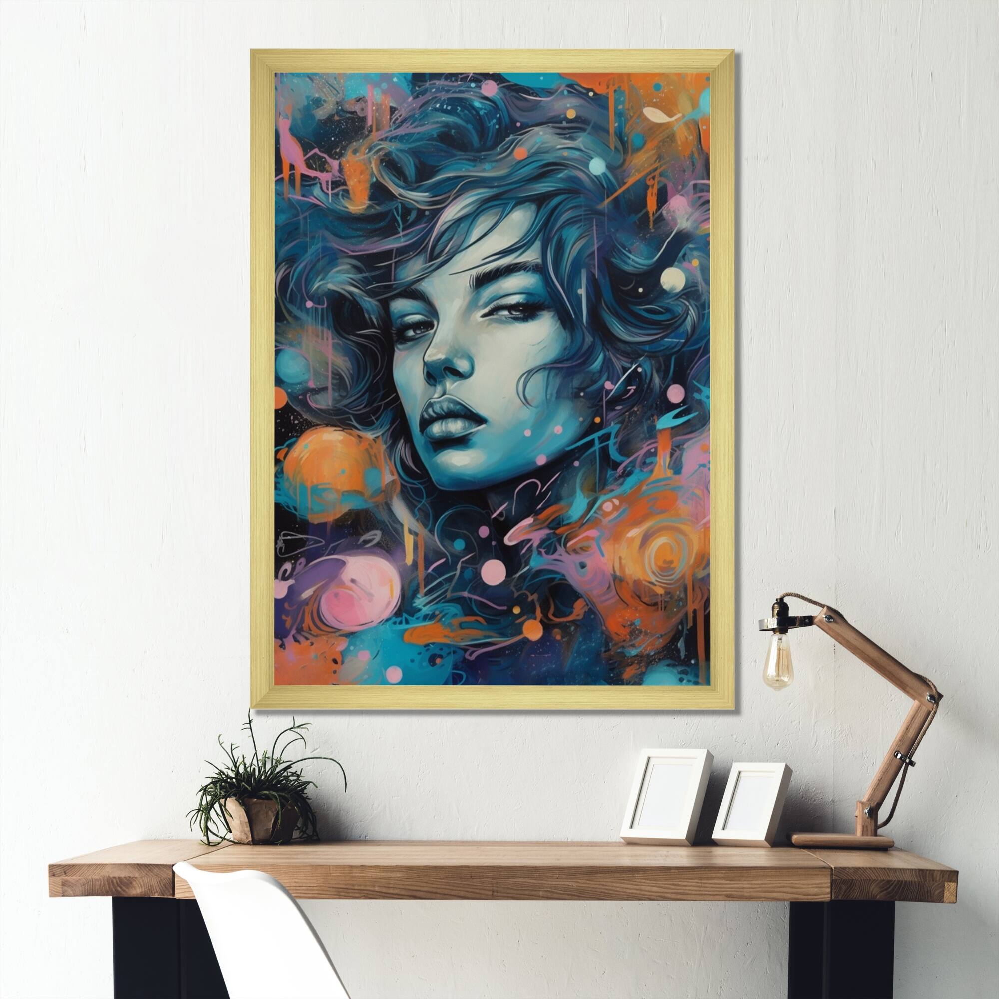 Designart "Vibrant Creative Woman Portrait I" Contemporary Glam Framed Art Print
