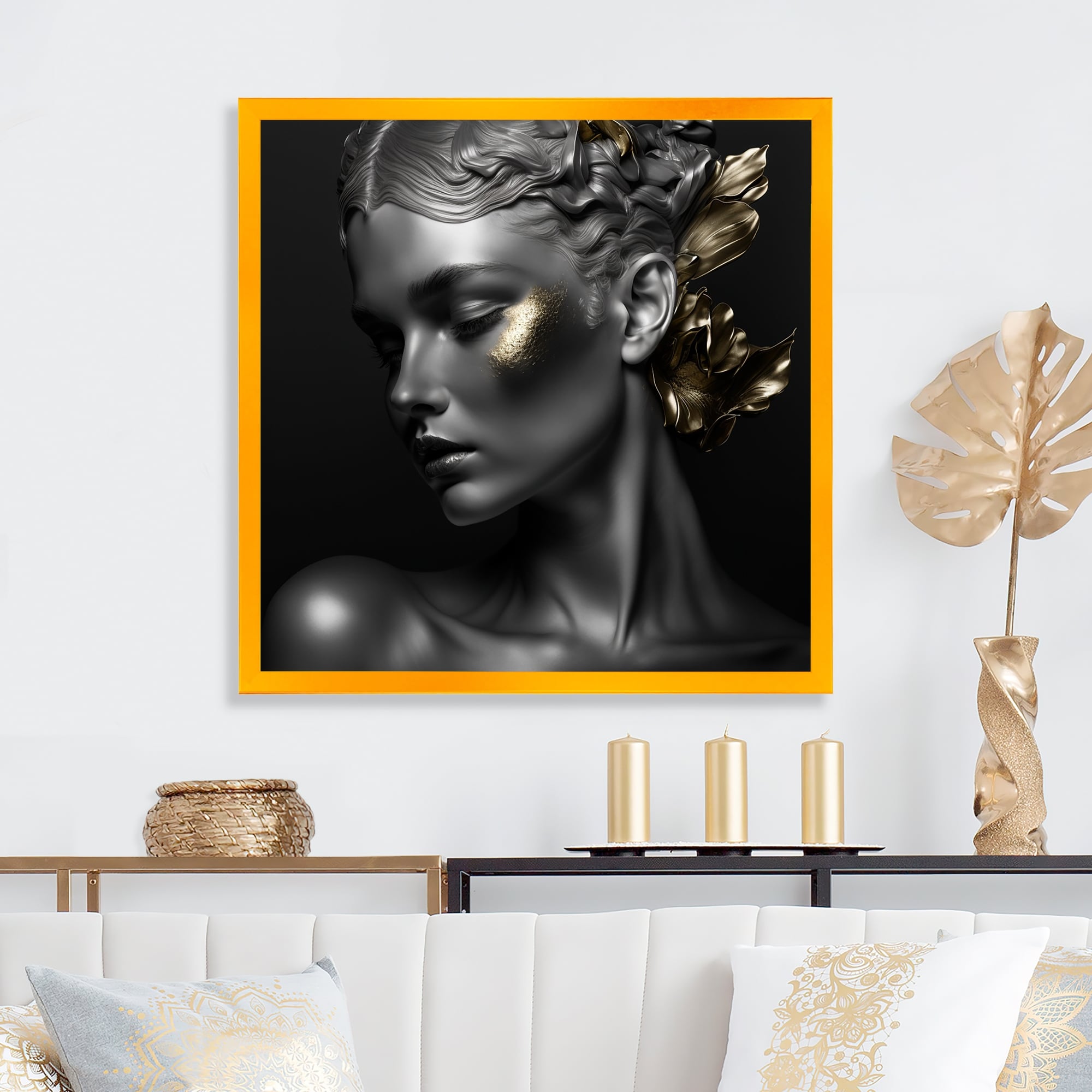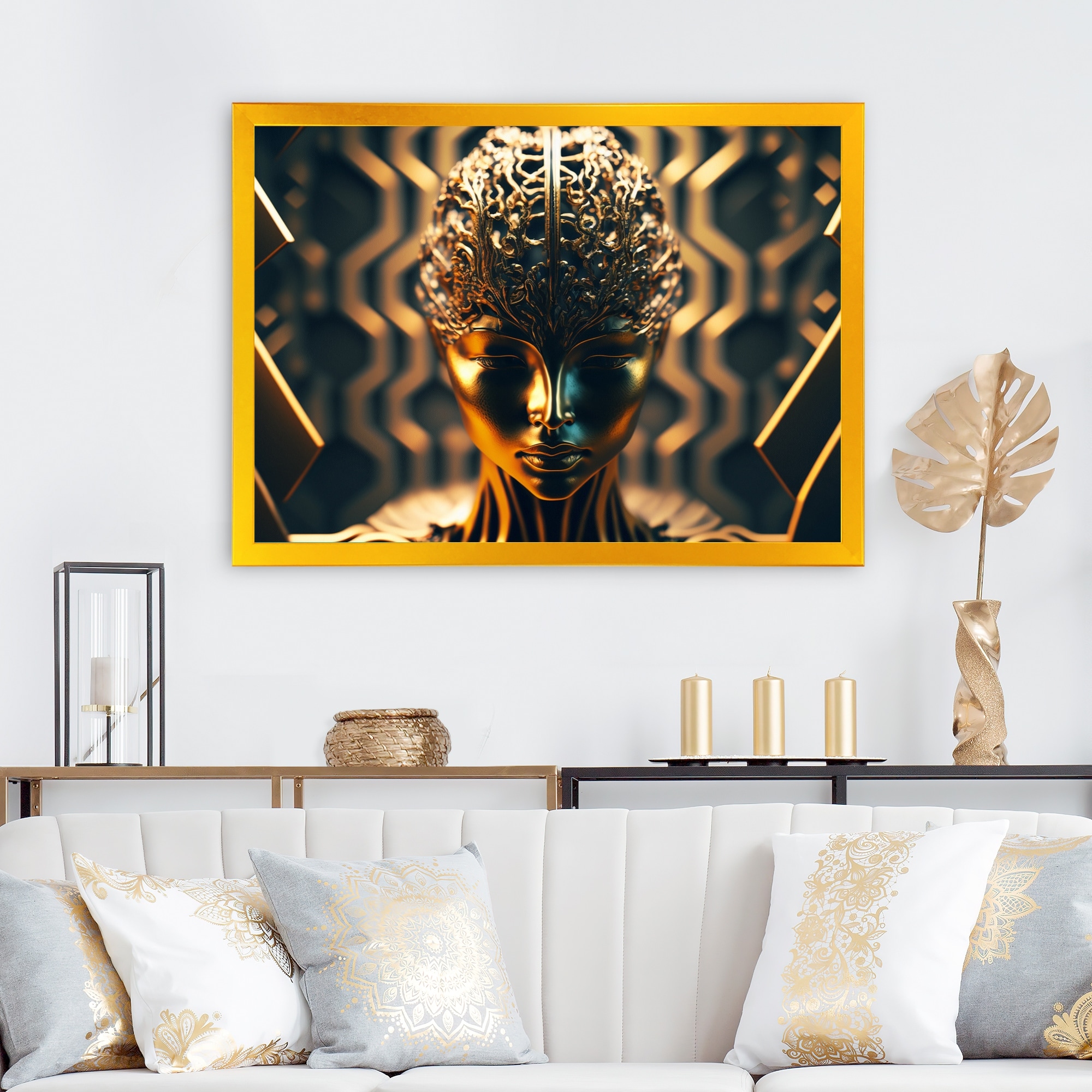 Designart "Futuristic Golden Goddess V" Modern Woman Framed Art Print