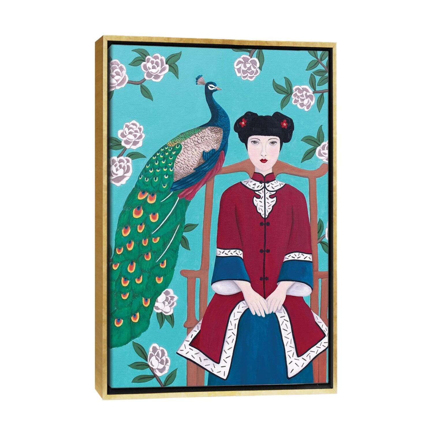 iCanvas "Chinese Woman And Peacock" by Sally B Framed