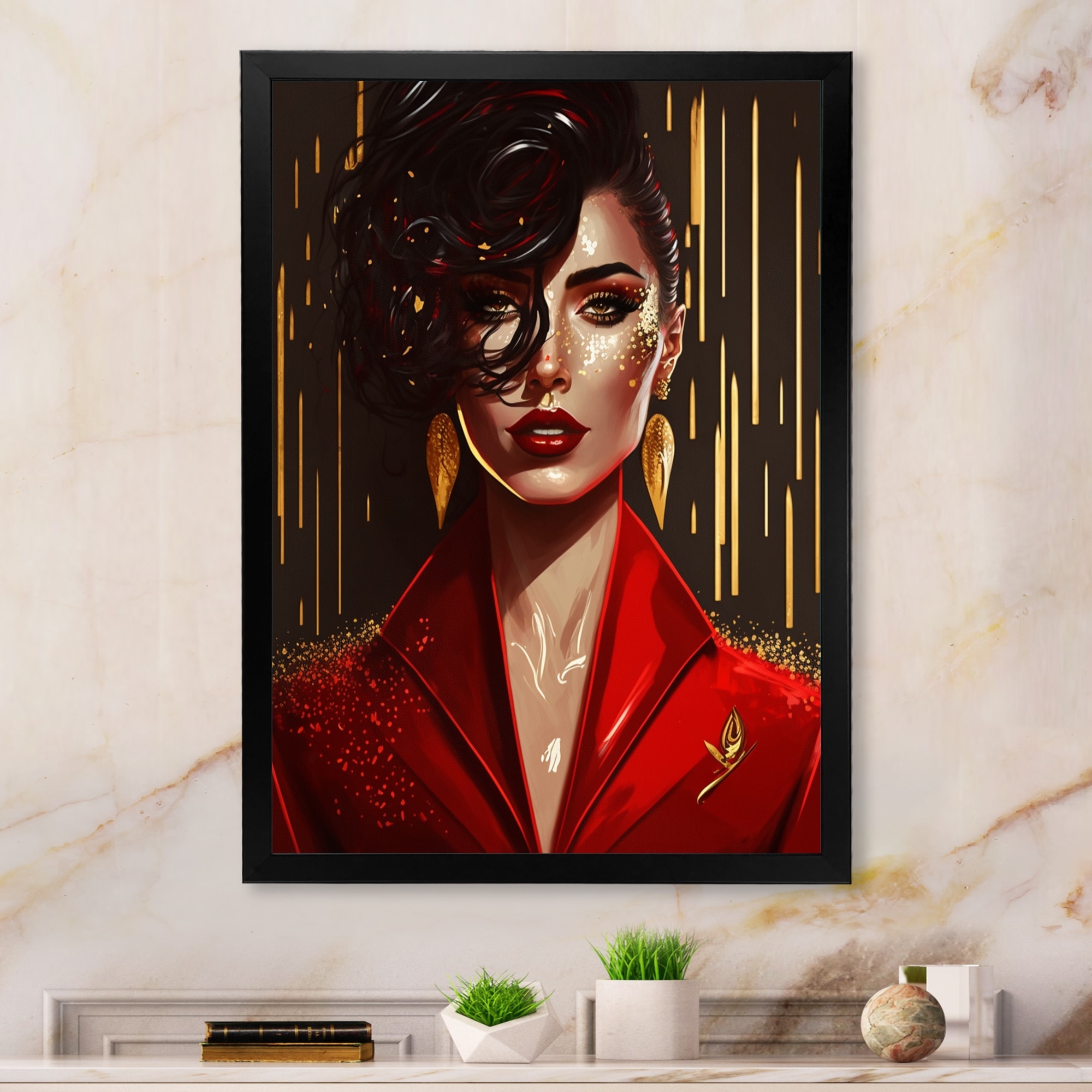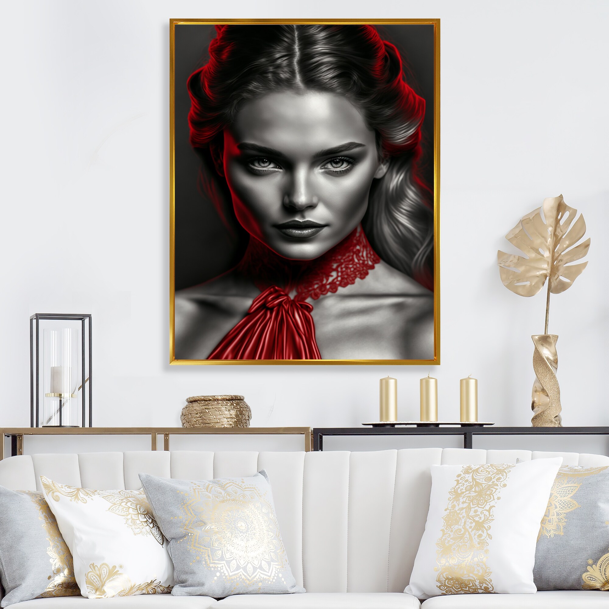Designart "Ravishing Woman in Red Iii" Woman Sensual Framed Canvas Wall Art