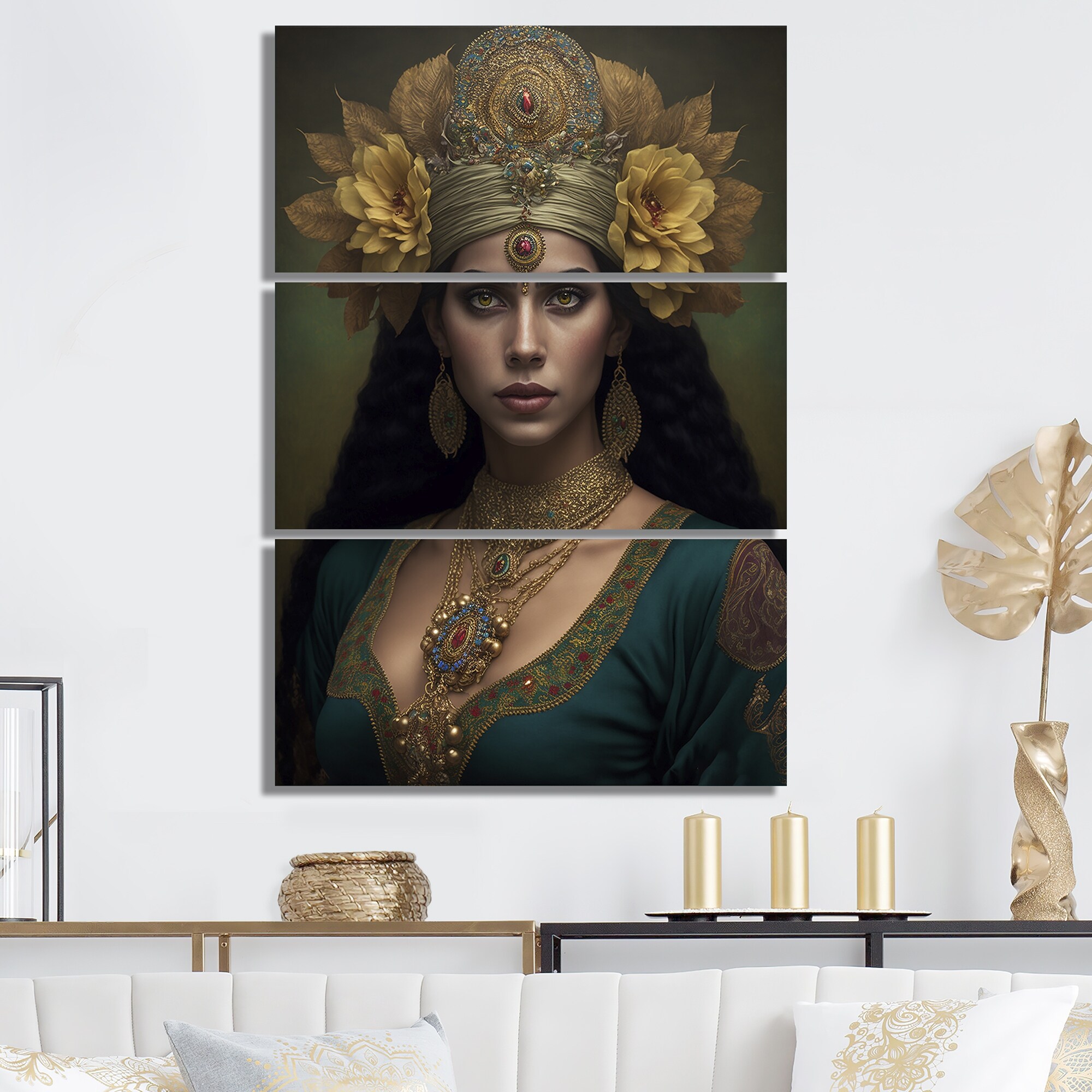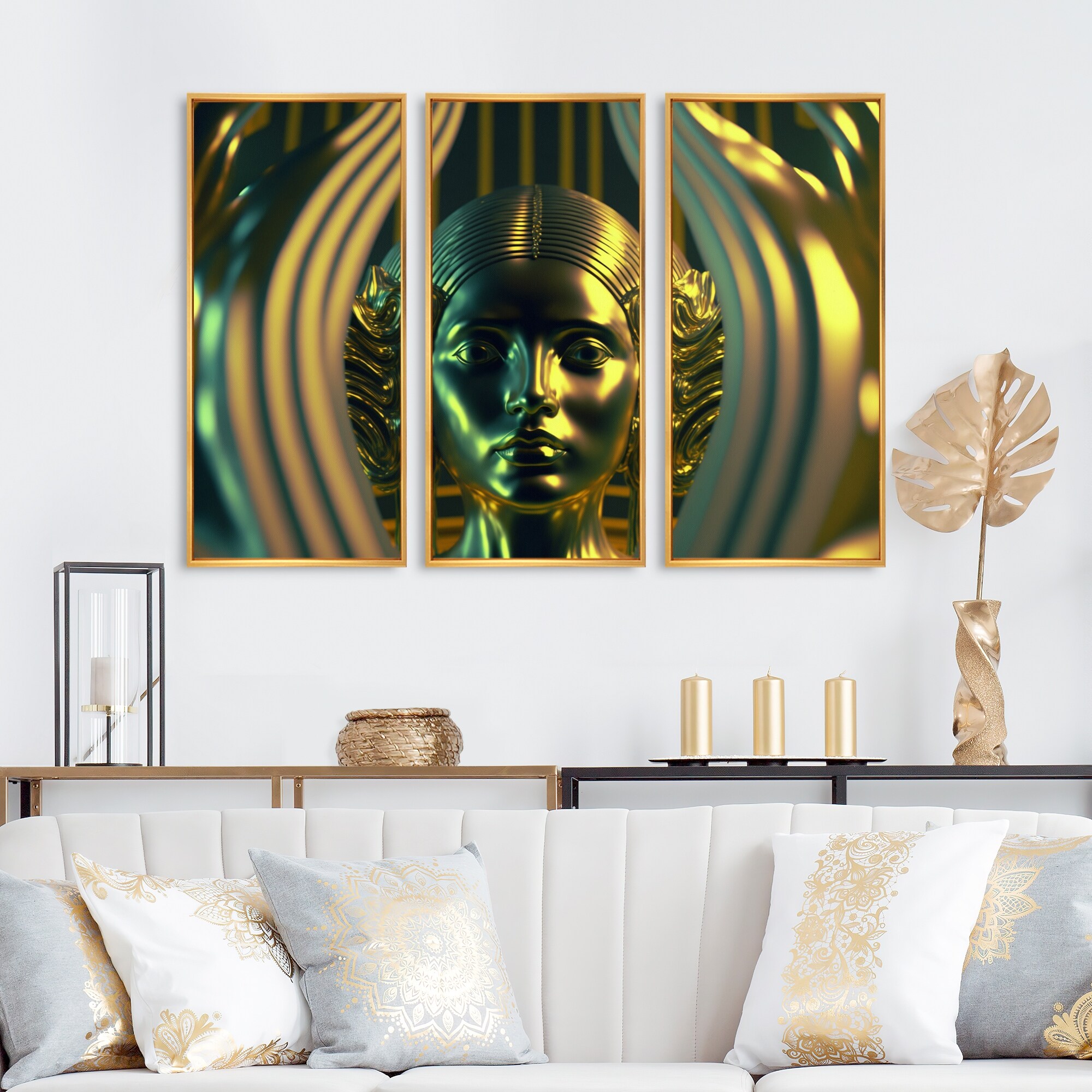 Designart "Golden Queen of Consciousness II" Modern Woman Framed Canvas Wall Art Print - 3 Panels