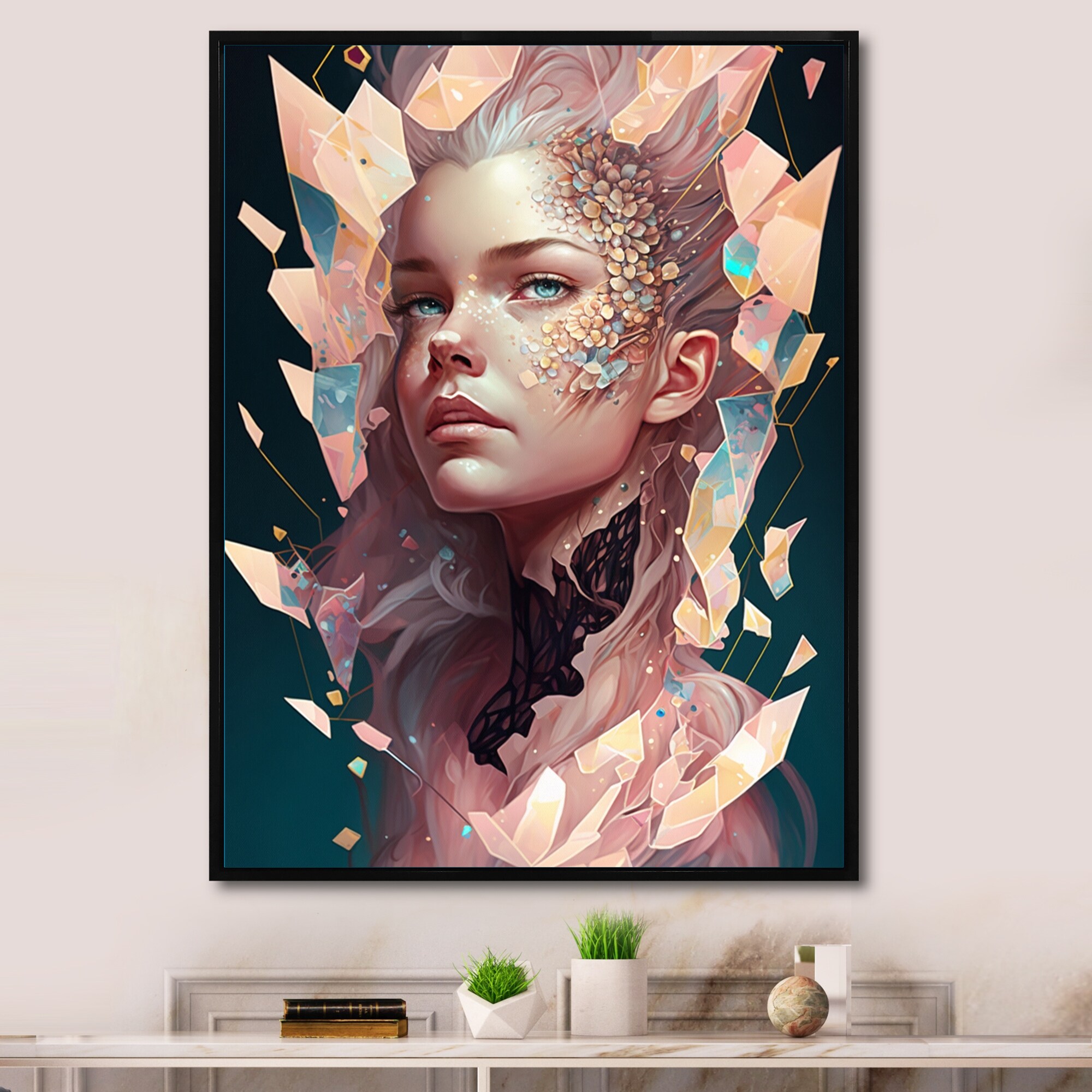 Designart "Crystal Hexagon Woman I" Modern Woman Framed Canvas Wall Art