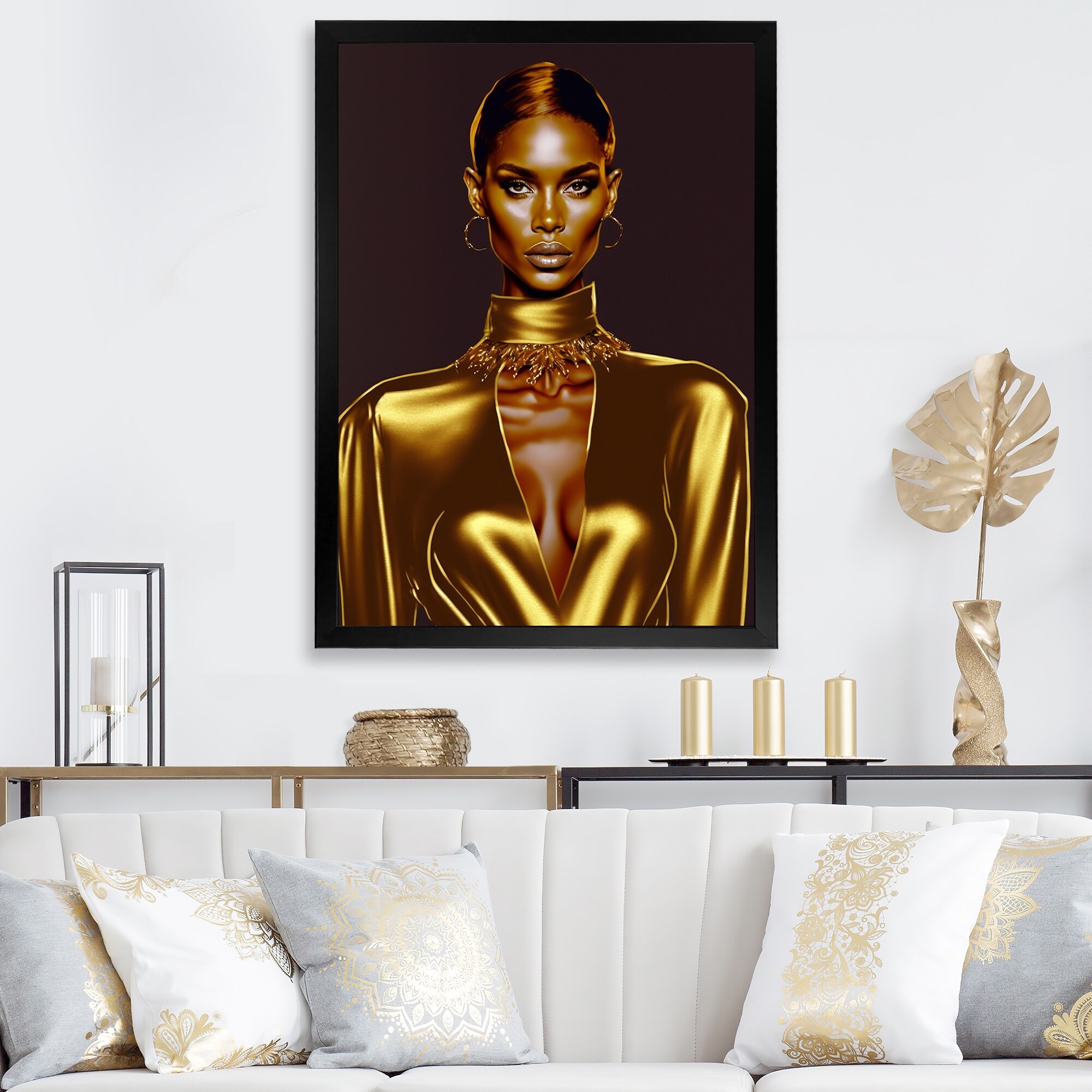 Designart "Exquisite Model Haute Couture Gold II" Fashion Woman Framed Wall Decor