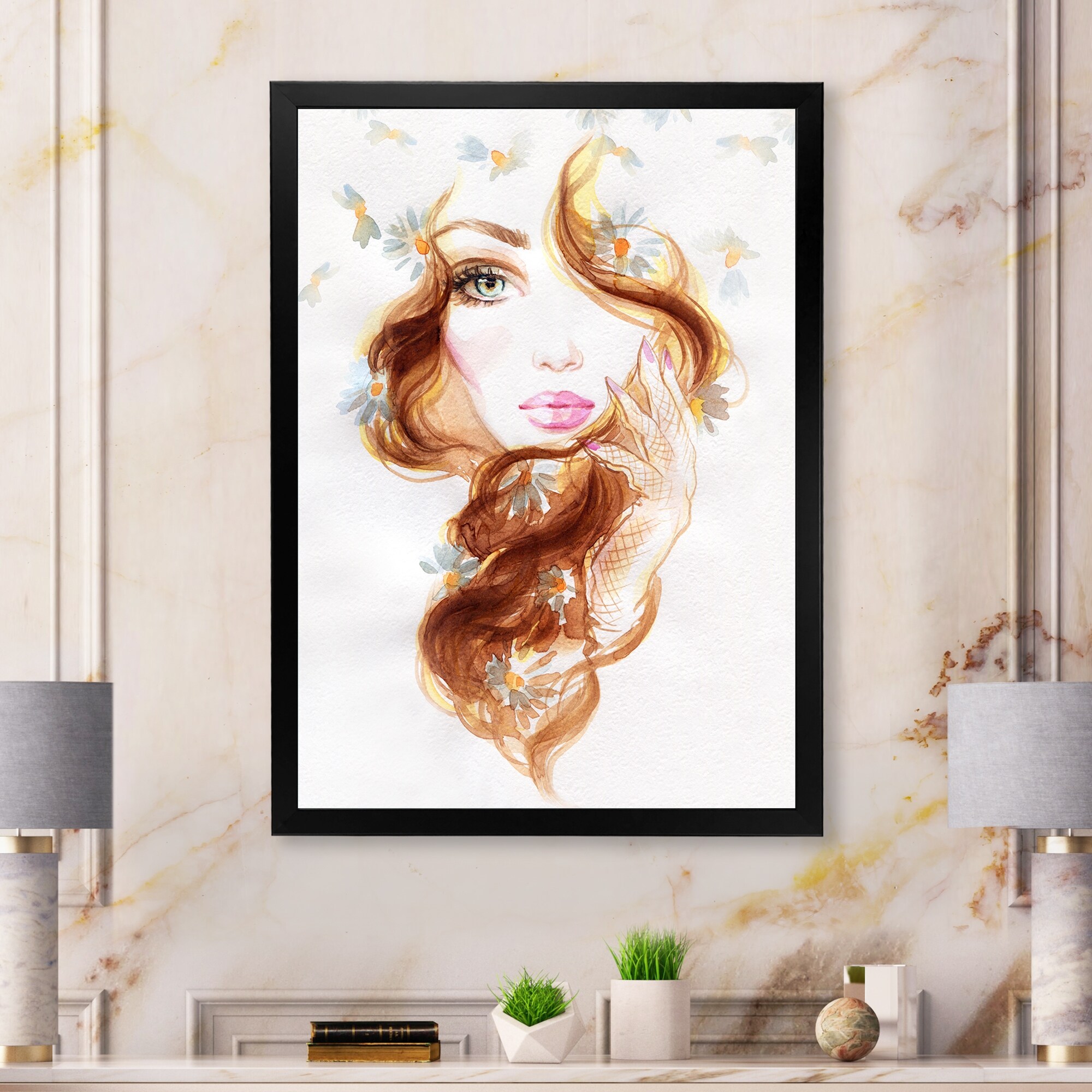 Designart "Floral Woman Portrait III" Glam Framed Wall Art