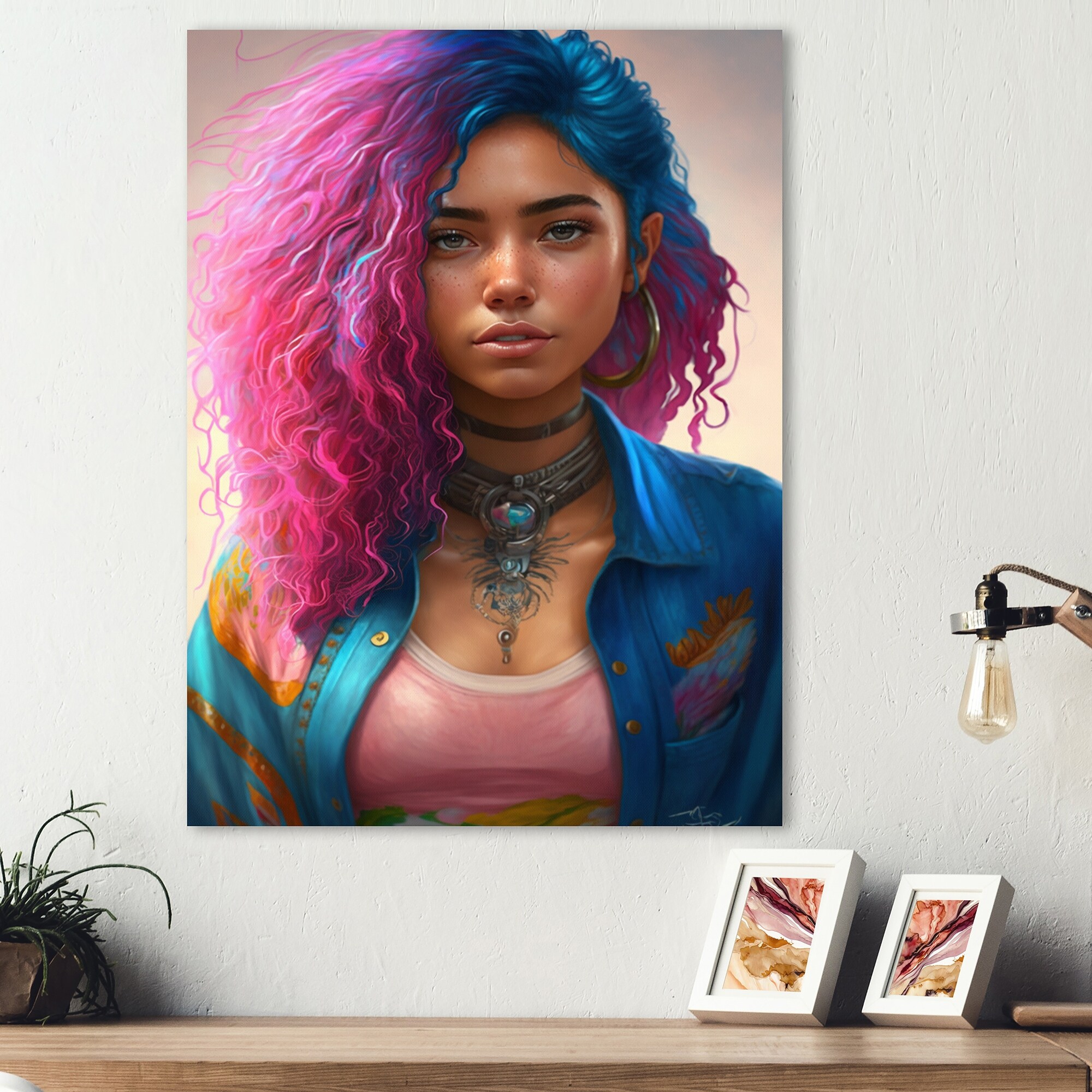 Designart "Colorful Fantasy Portrait of a Young Woman III" Modern Framed Canvas Wall Art Print