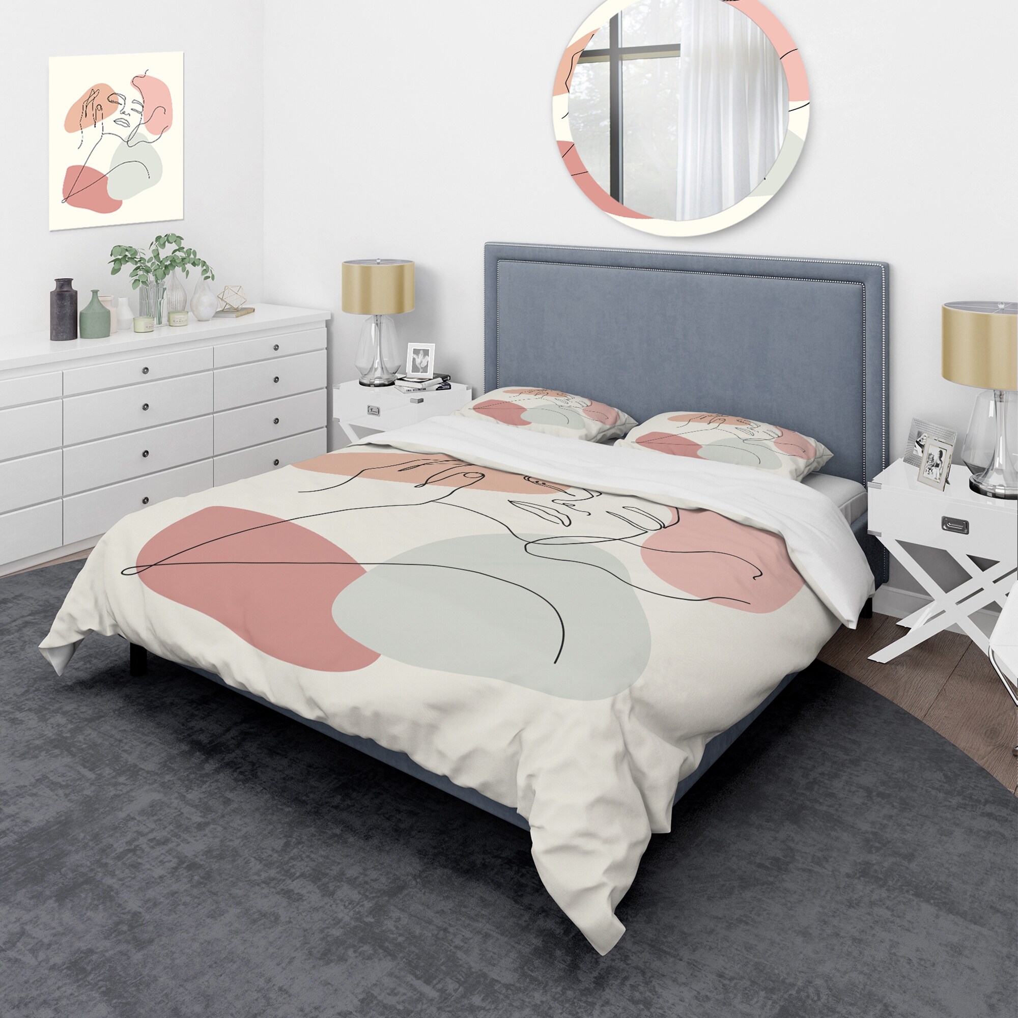 Designart 'Continuous Line Portrait of Woman In' Modern Duvet Cover Set