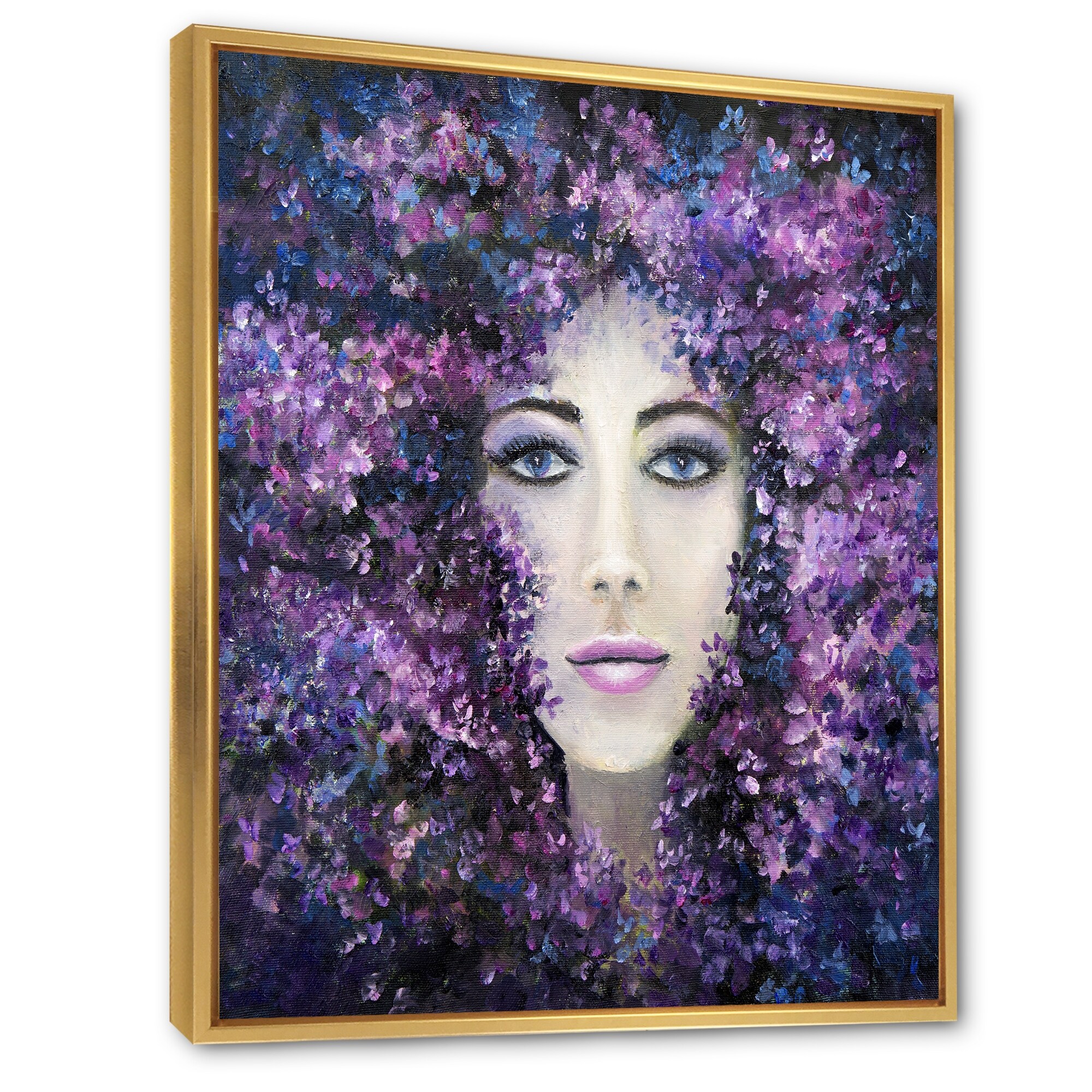 Designart "Portrait of a Woman With Purple Lavender Flowers" Modern Framed Canvas Wall Art Print