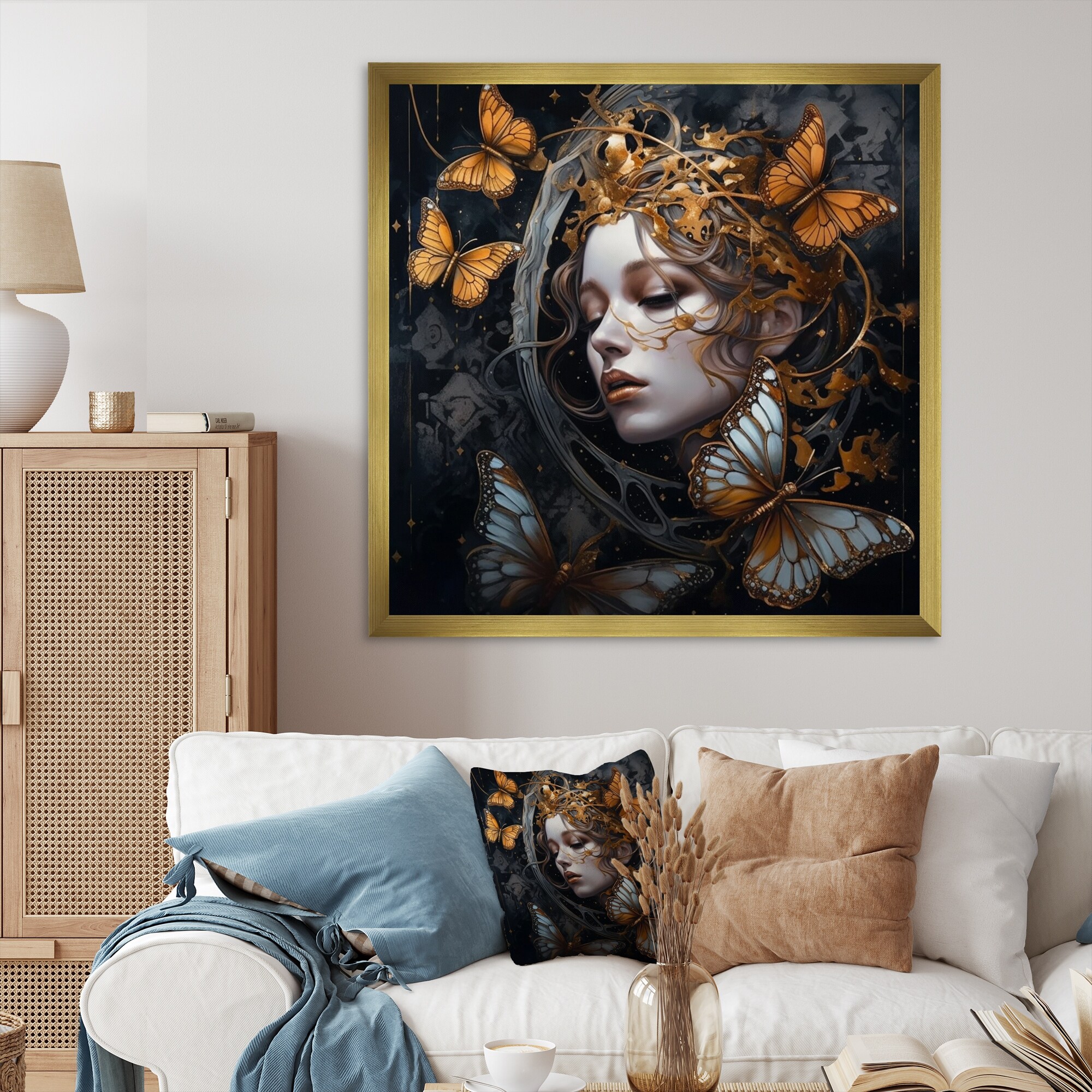 Designart "Female Golden Butterflies I" Woman Butterfly Framed Canvas Prints