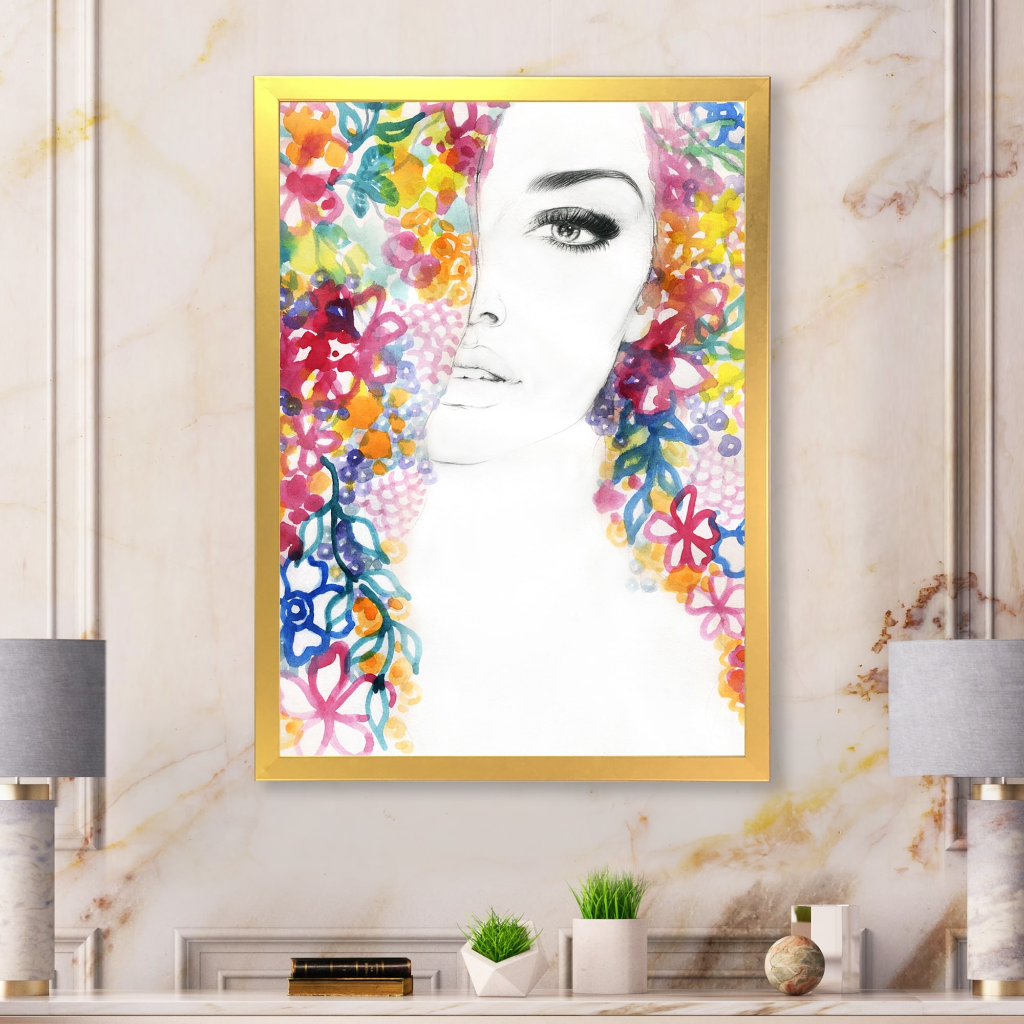Designart "Floral Fashion Woman Portrait" Glam Framed Wall Art