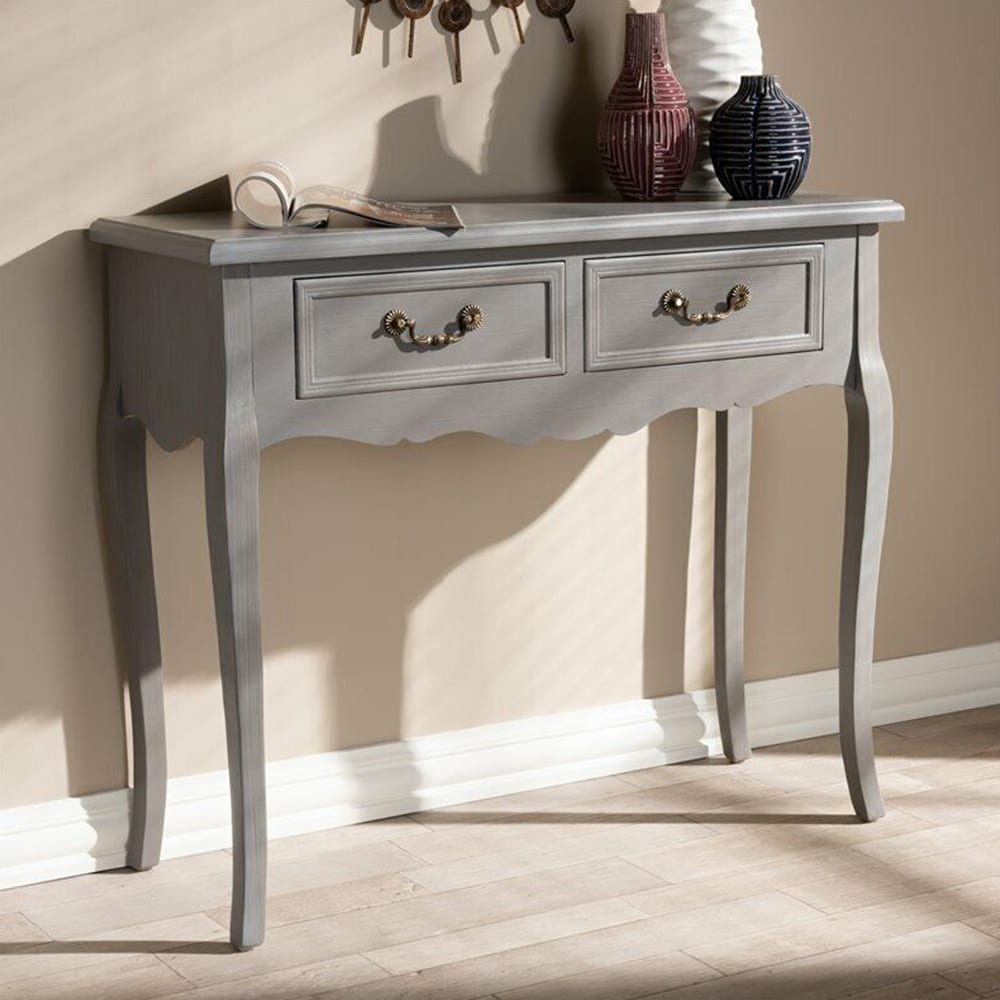 Grey Finished Wood 2-Drawer Console Table - 54 x 84|Wood - 5