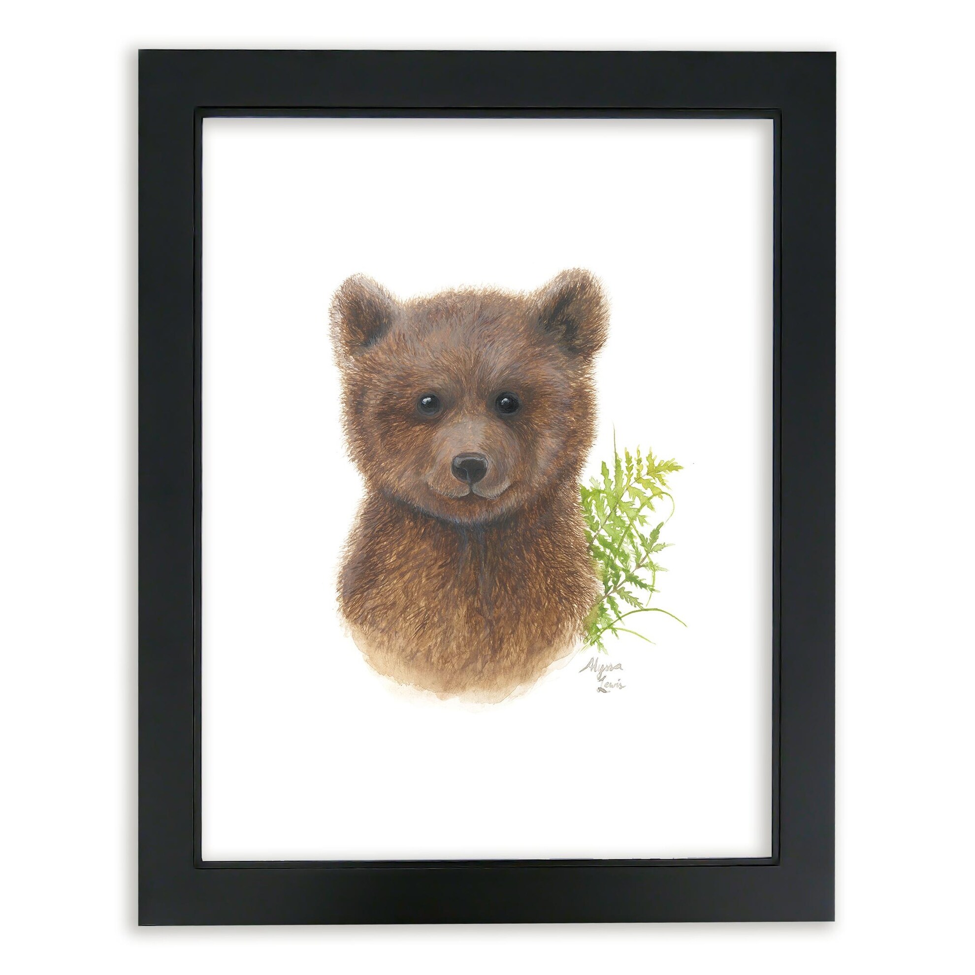 "Woodland Littles 2" - Bear - Individual Framed Print - Black - 16" x 20"
