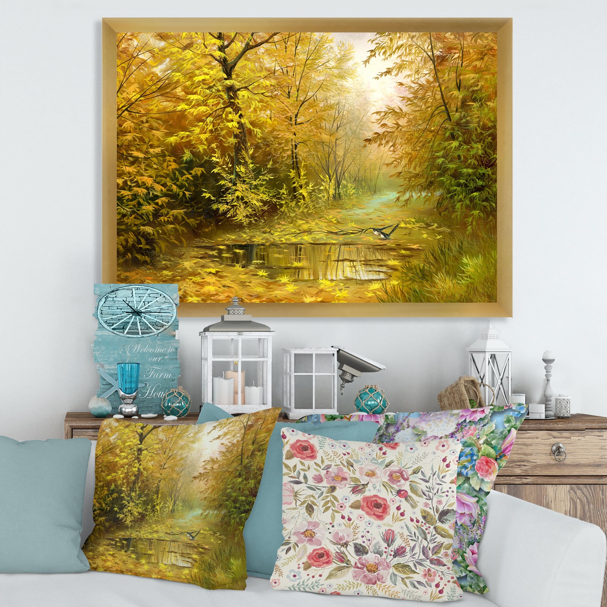 Designart "Road In Yellow Woodlands" Country Framed Art Print