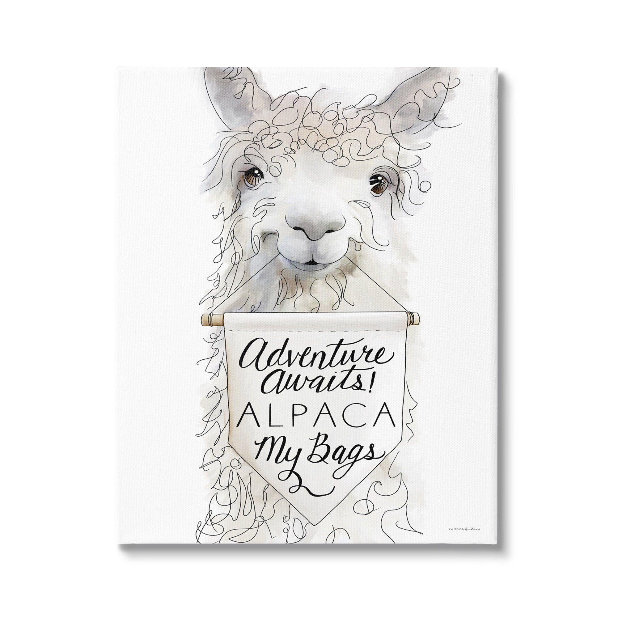 Stupell Adventure Awaits Woodland Animal Phrase Sign Motivational Animal Canvas Wall Art - White