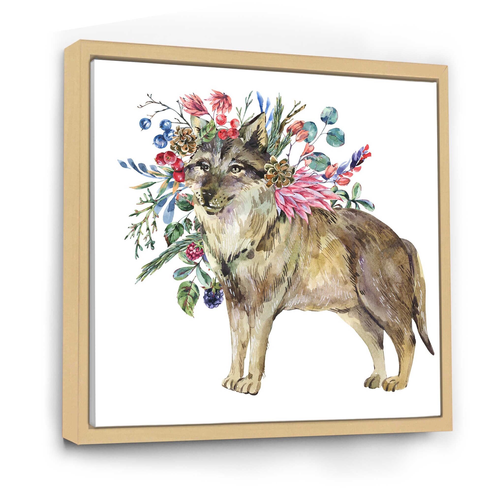 Designart "Wolf With Woodland Flowers" Farmhouse Framed Canvas Wall Art Print