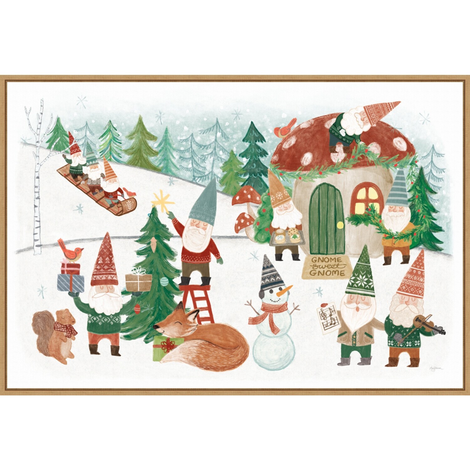 Woodland Gnomes V by Mary Urban Canvas Art Framed - 33 x 23 in