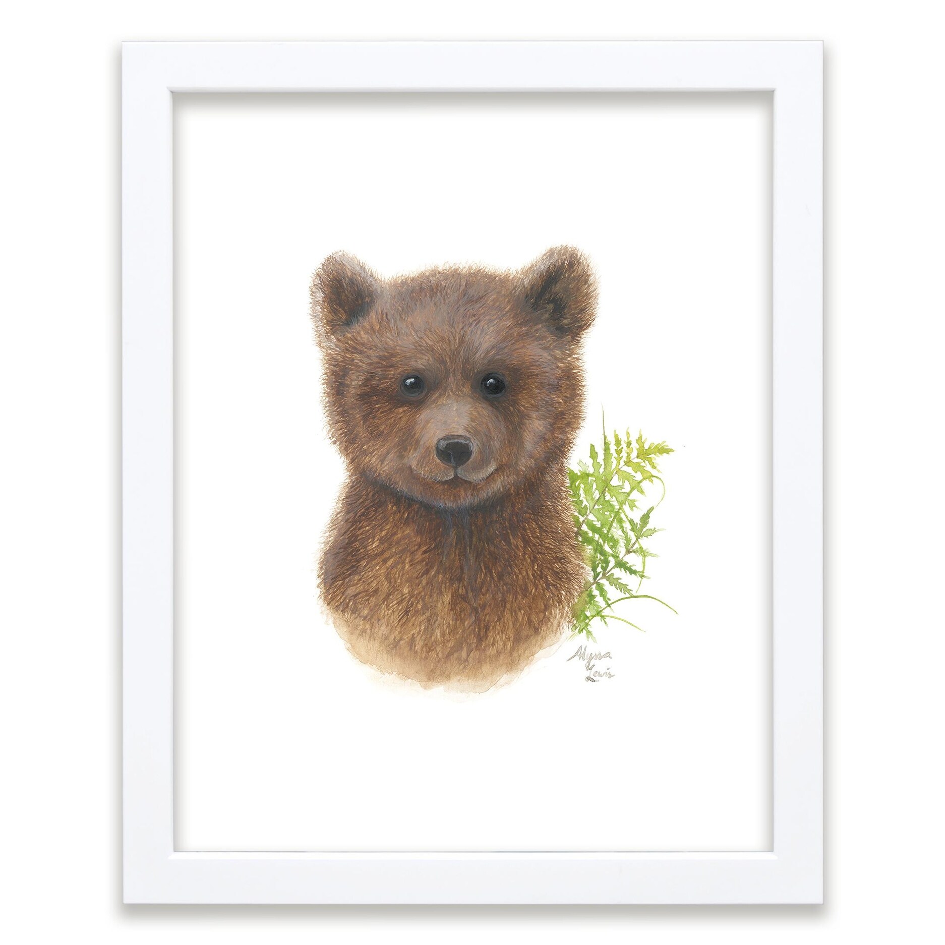 "Woodland Littles 2" - Bear - Individual Framed Print - White - 16" x 20" - Multi-Color