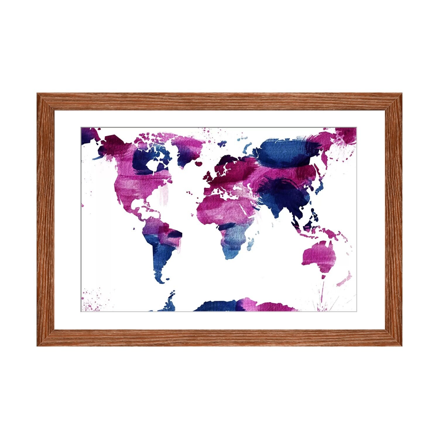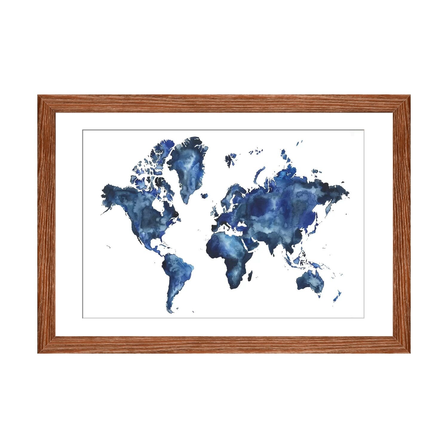 iCanvas "Torkingtons World Map with Indigo" by Sue Schlabach Framed