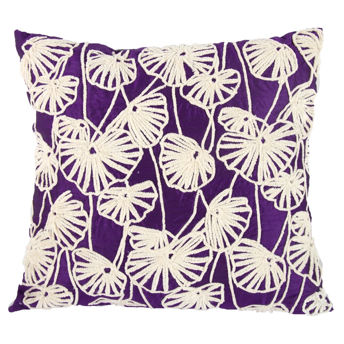 20 x 18 Inch Cotton Pillow with Dupioni Embroidery, Set of 2, White and Purple
