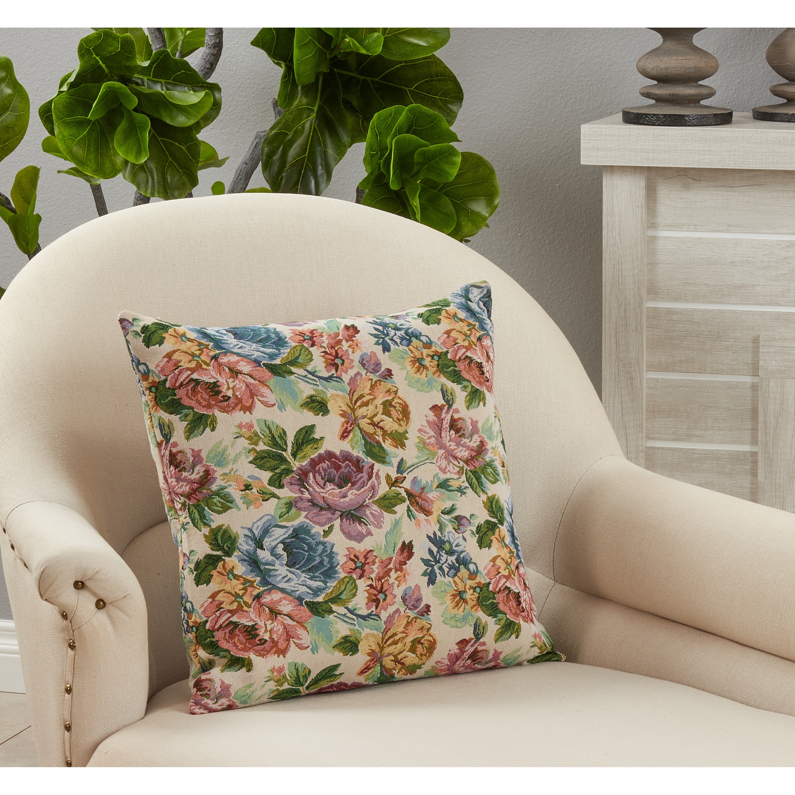 Throw Pillow With Jacquard Flower Design, 18"x18"