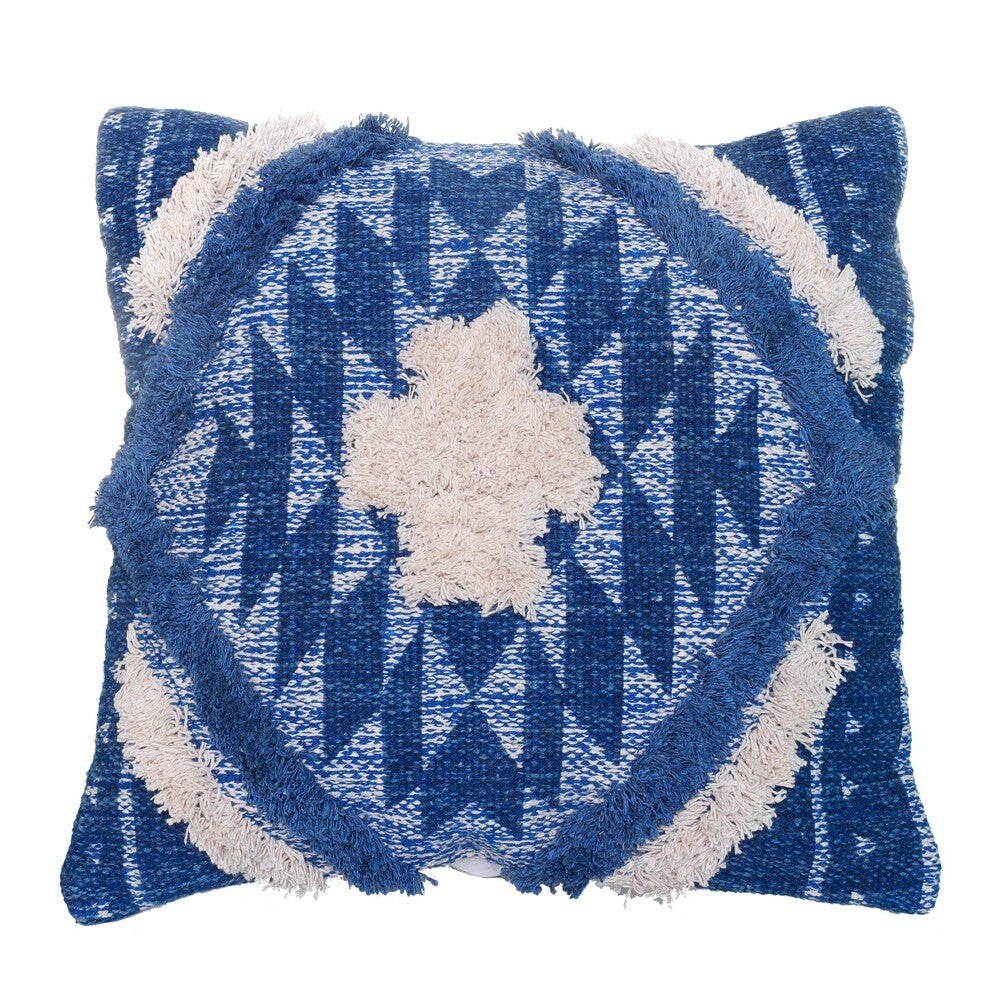 18 X 18 Handcrafted Shaggy Soft Cotton Accent Throw Pillow - Blue and White