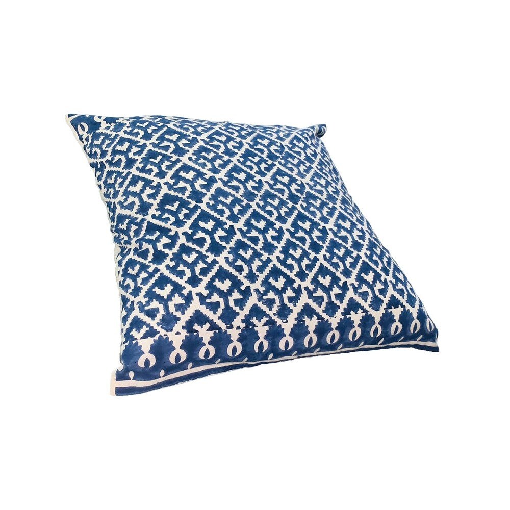 Dahlia Tribal Pattern Indian Throw Pillow 18"x18" - White/Navy