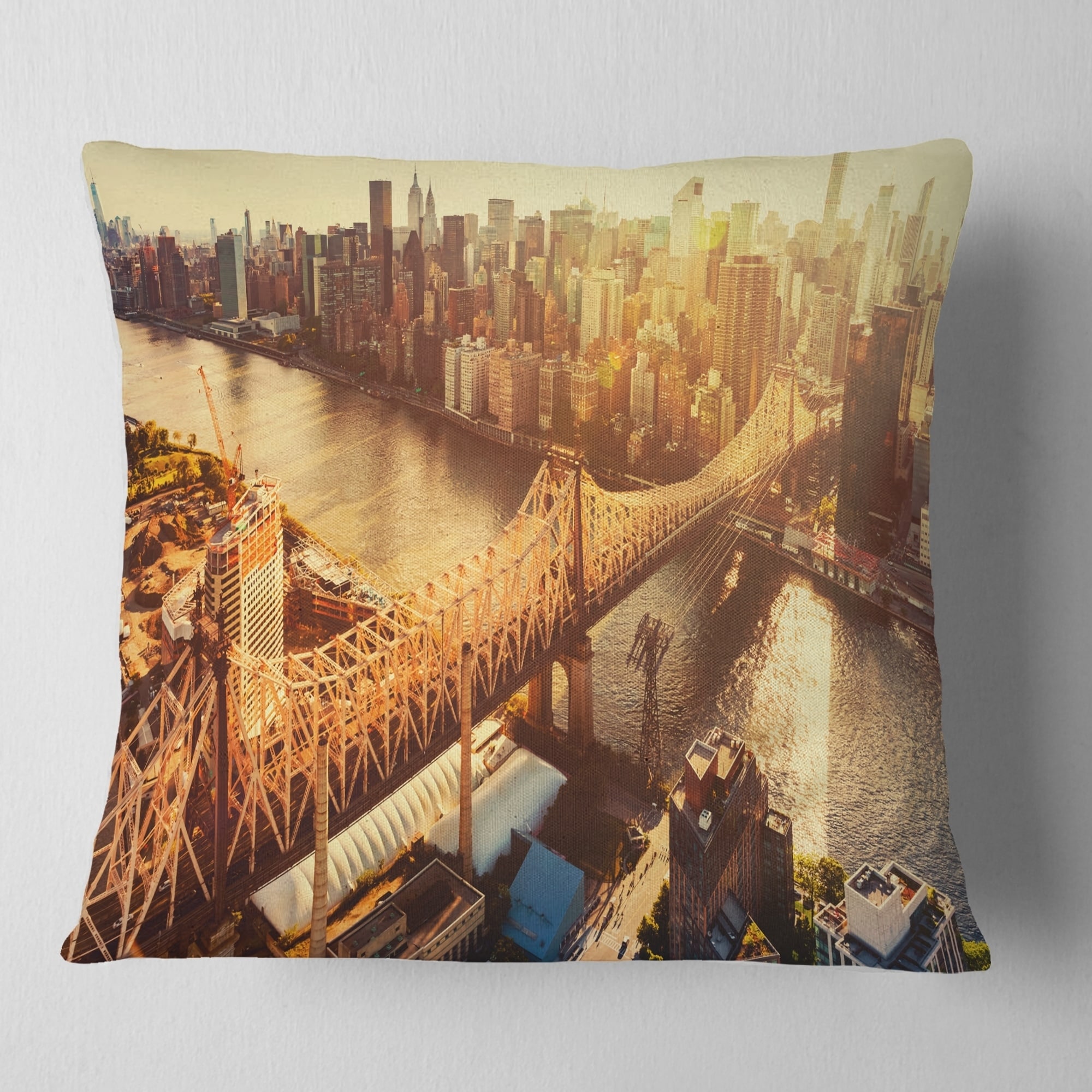 Designart 'Queensboro Bridge over East River' Cityscape Throw Pillow