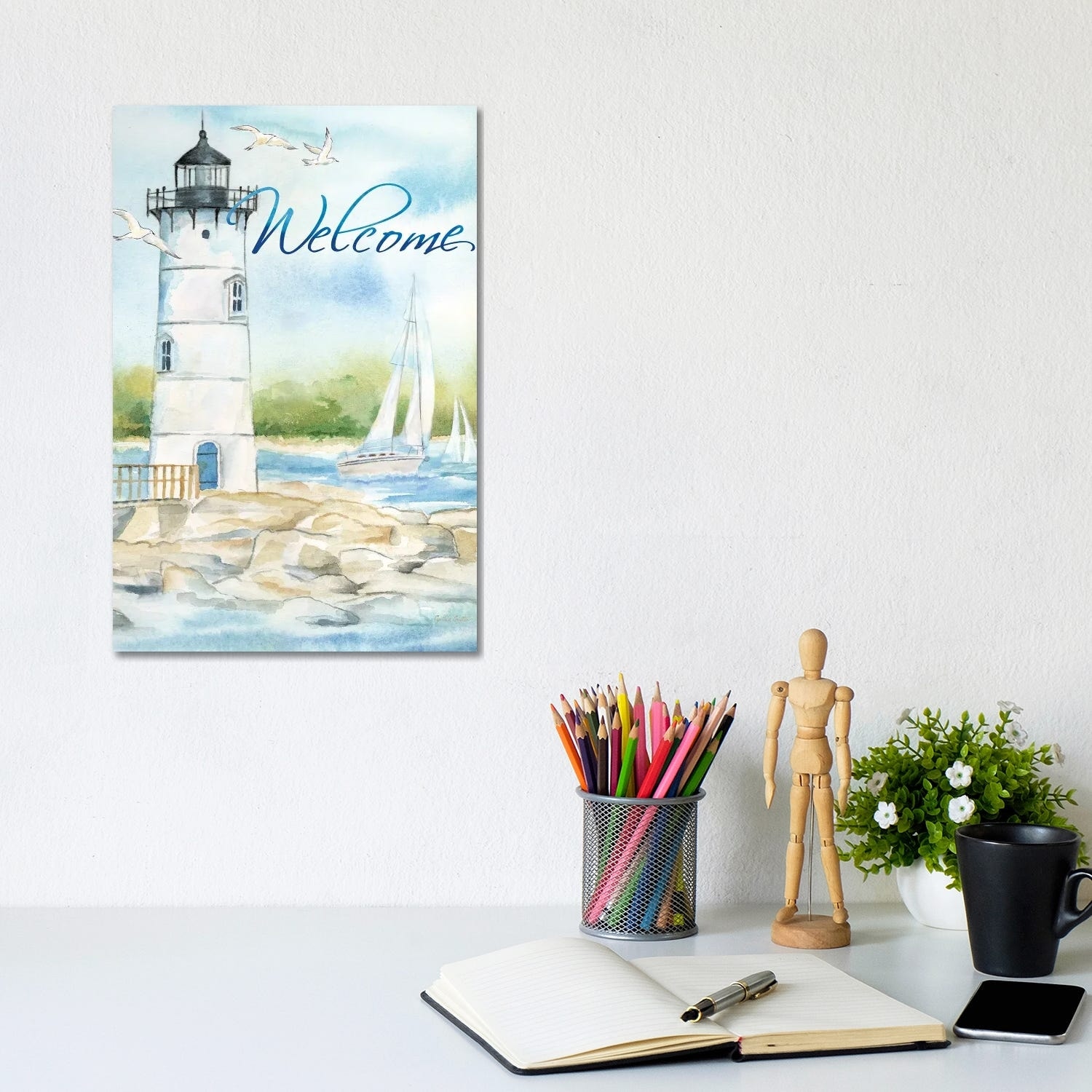 iCanvas "East Coast Lighthouse portrait I-Welcome" by Cynthia Coulter Canvas Print