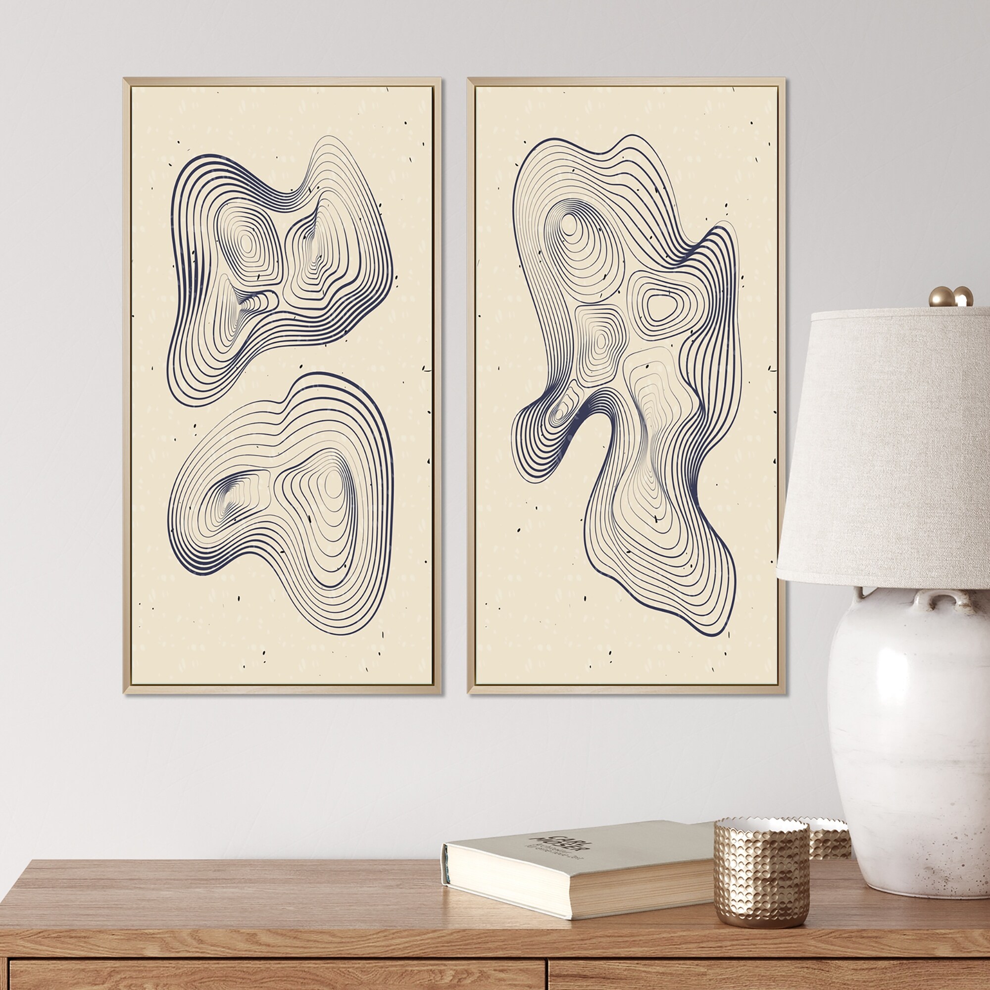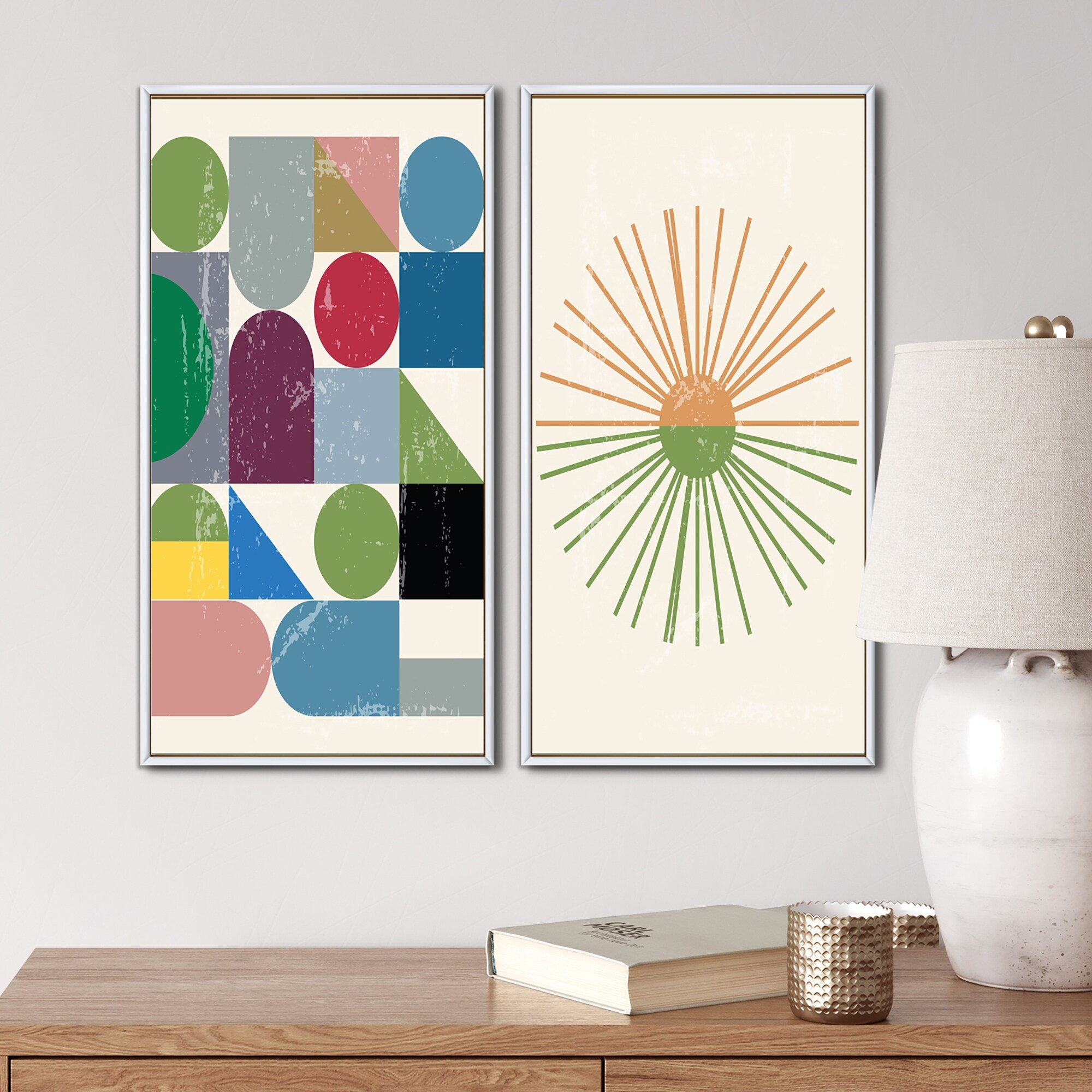 Designart "Japanese Minimalist Retro Oriental Designs I" Geometric Framed Art Set of 2 Pieces