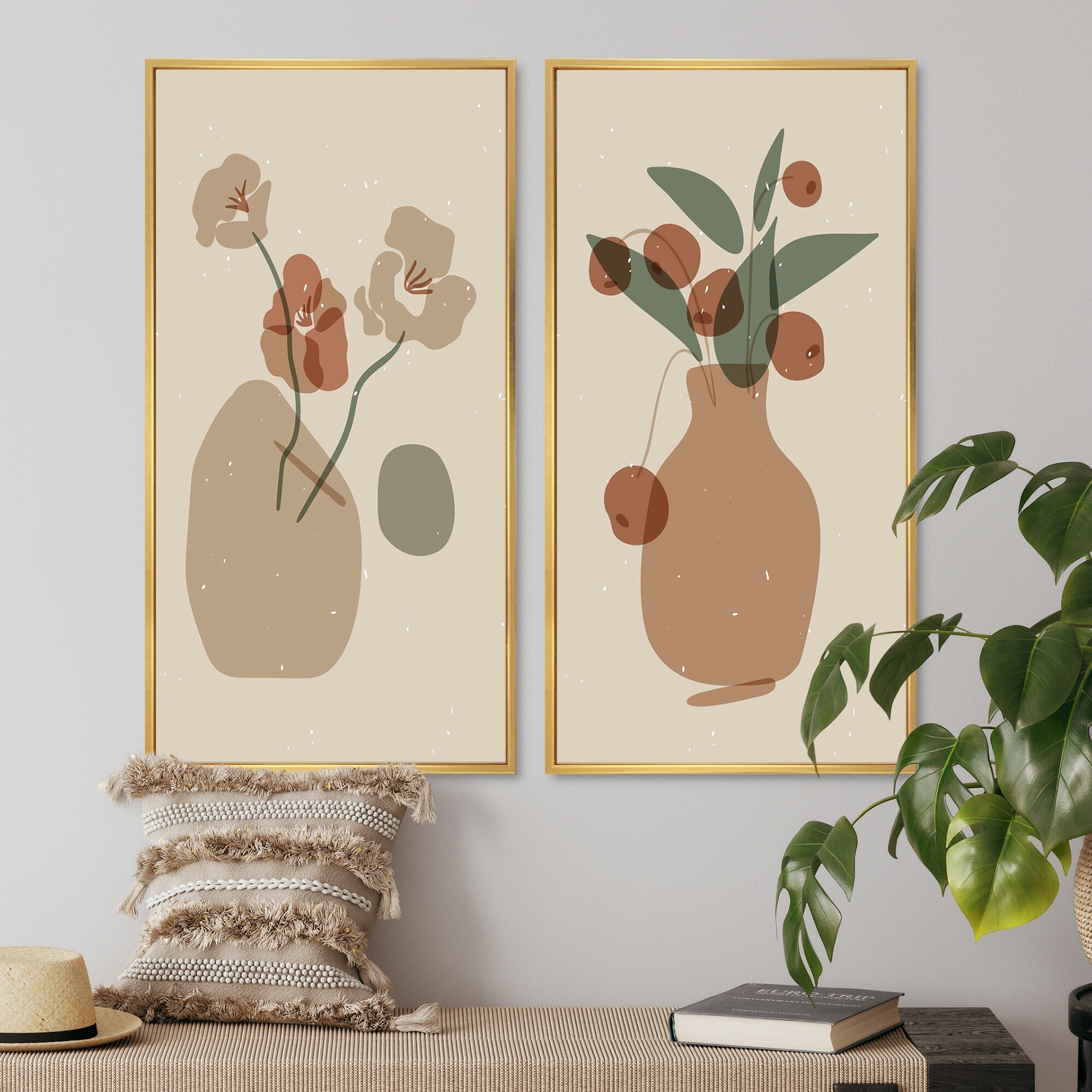 Designart "Japanese Vintage Creative Leaves V" Cottage Framed Art Set of 2 Pieces