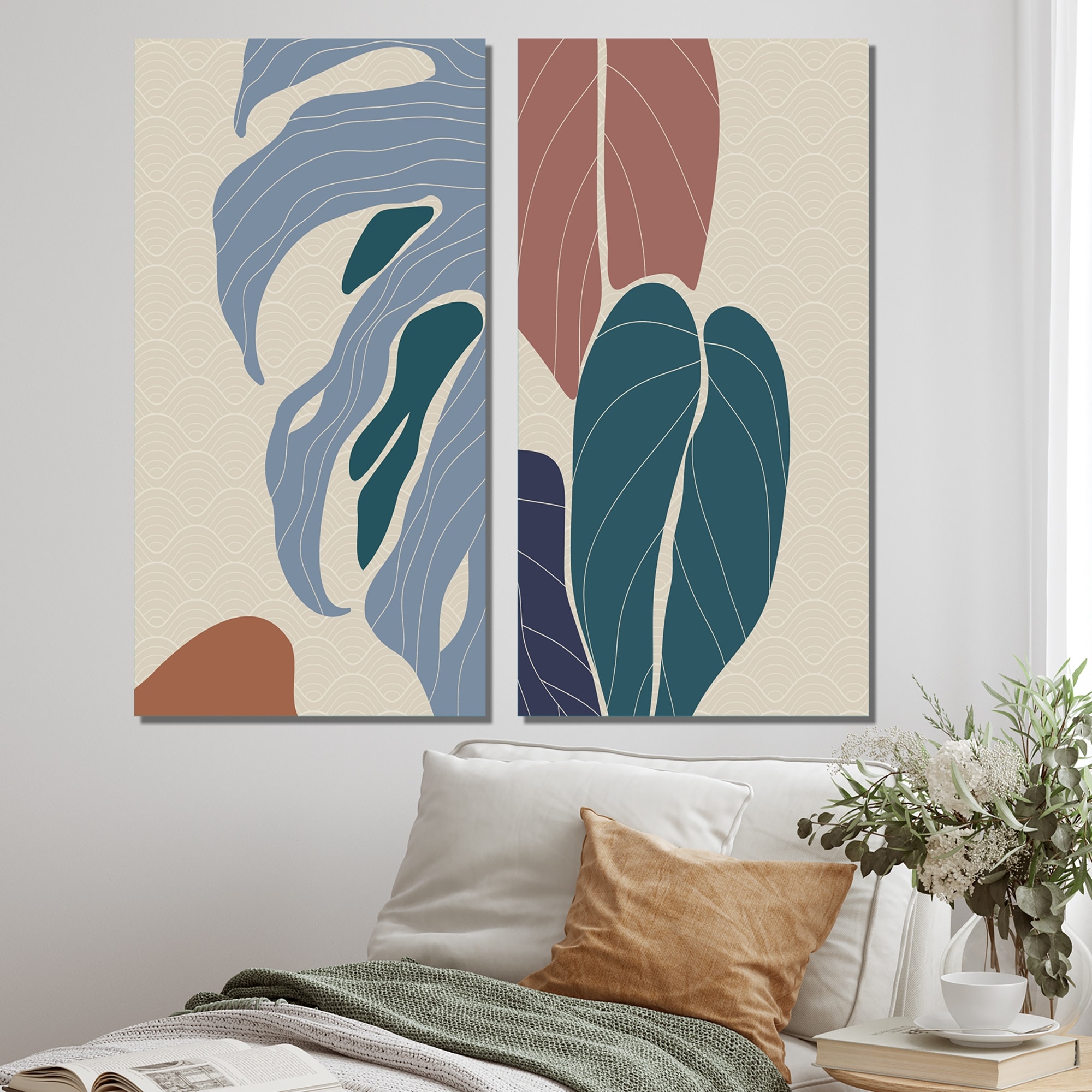 Designart 'Japanese Vintage Creative Leaves VI' Cottage Set of 2 Pieces