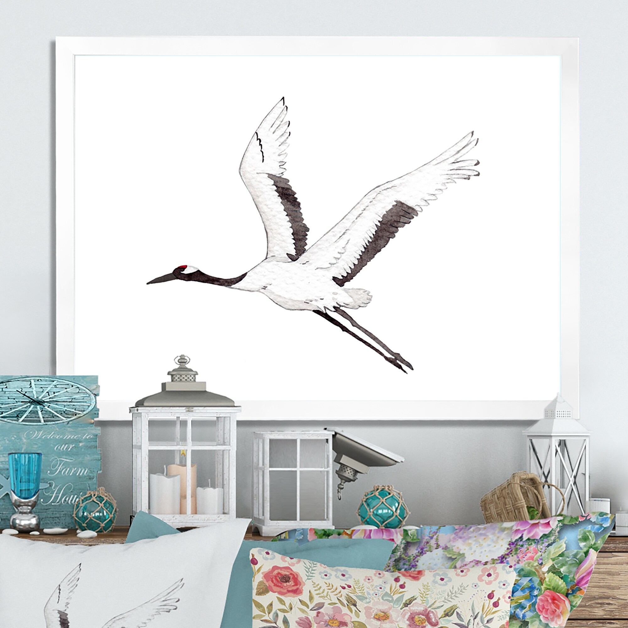 Designart "Japanese Red Crown Crane Bird" Traditional Framed artwork