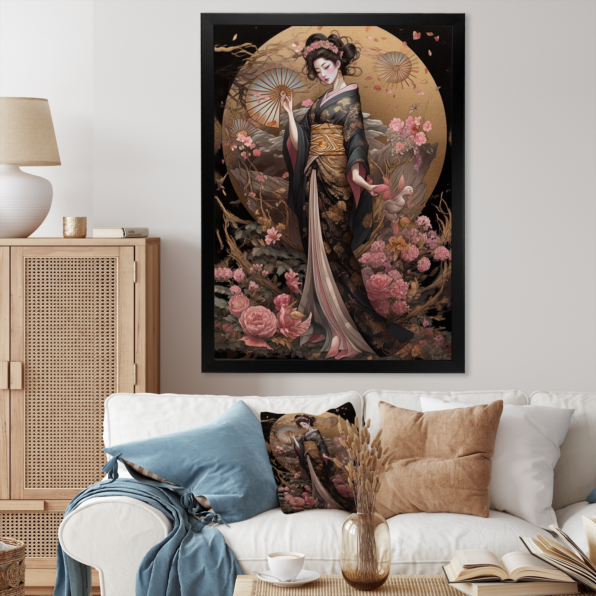 Designart "Japanese Mystery Goddess II" Asian Woman Framed Canvas Wall Art Print