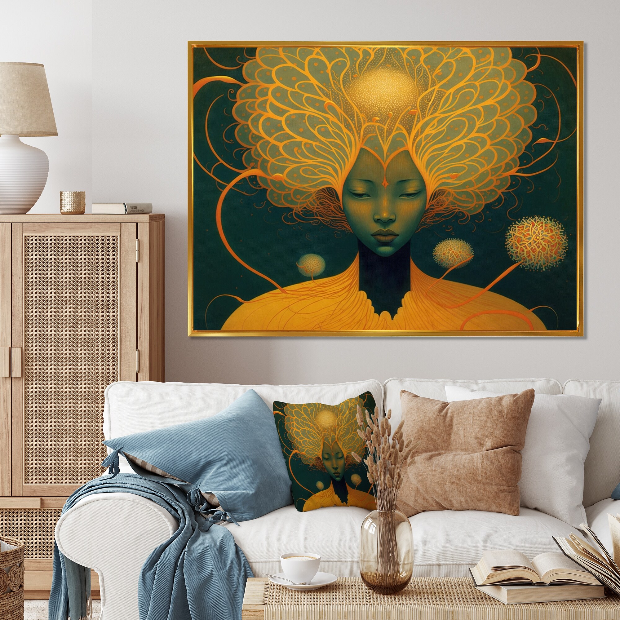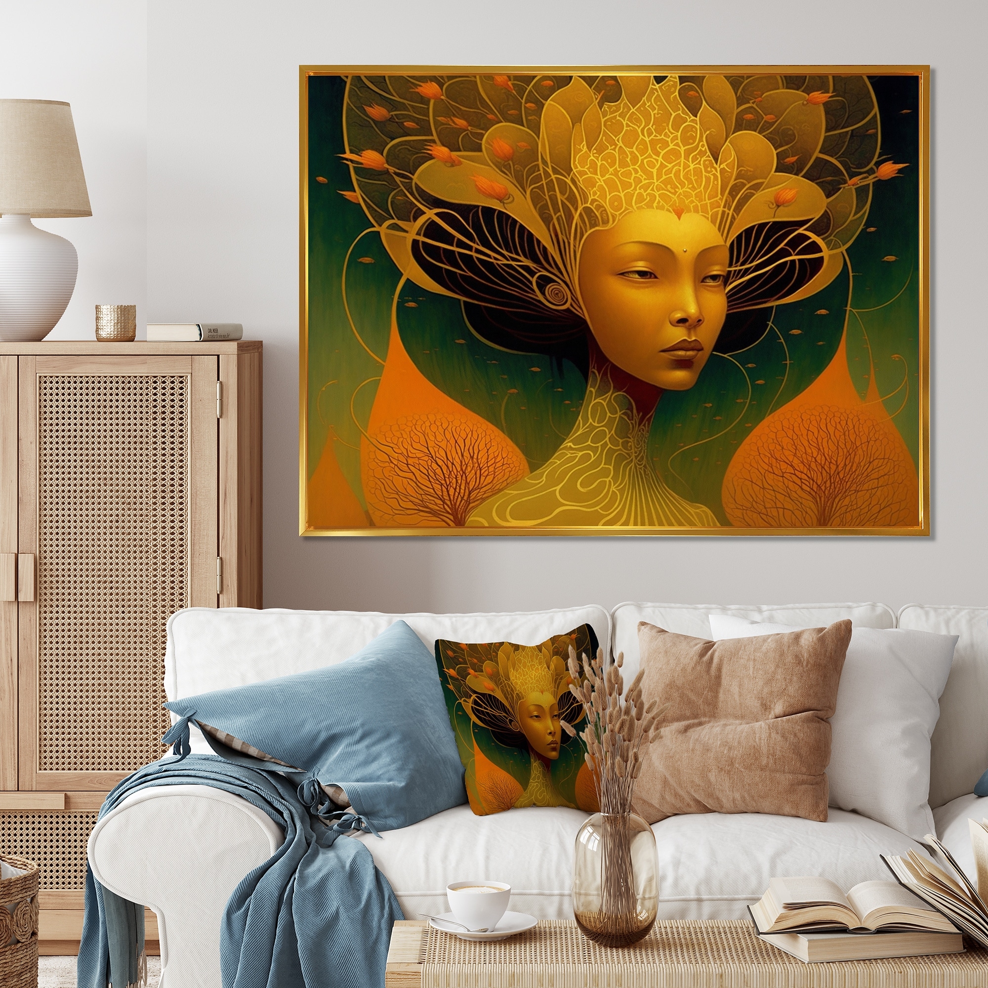 Designart "Japanese Mystery Goddess I" Asian Woman Framed Canvas Wall Art Print