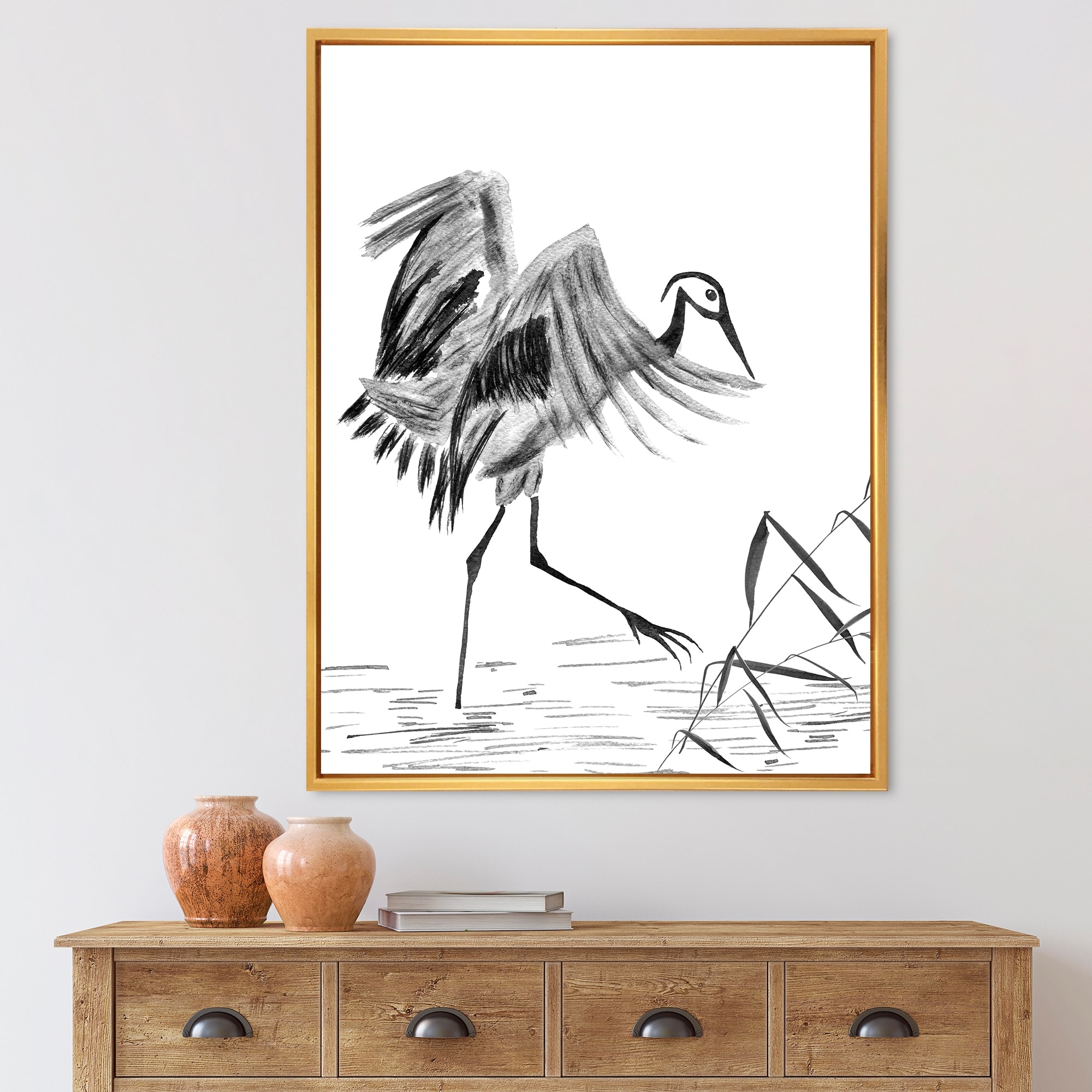 Designart "Japanese Oriental Crane Bird" Traditional Framed Canvas Wall Art Print