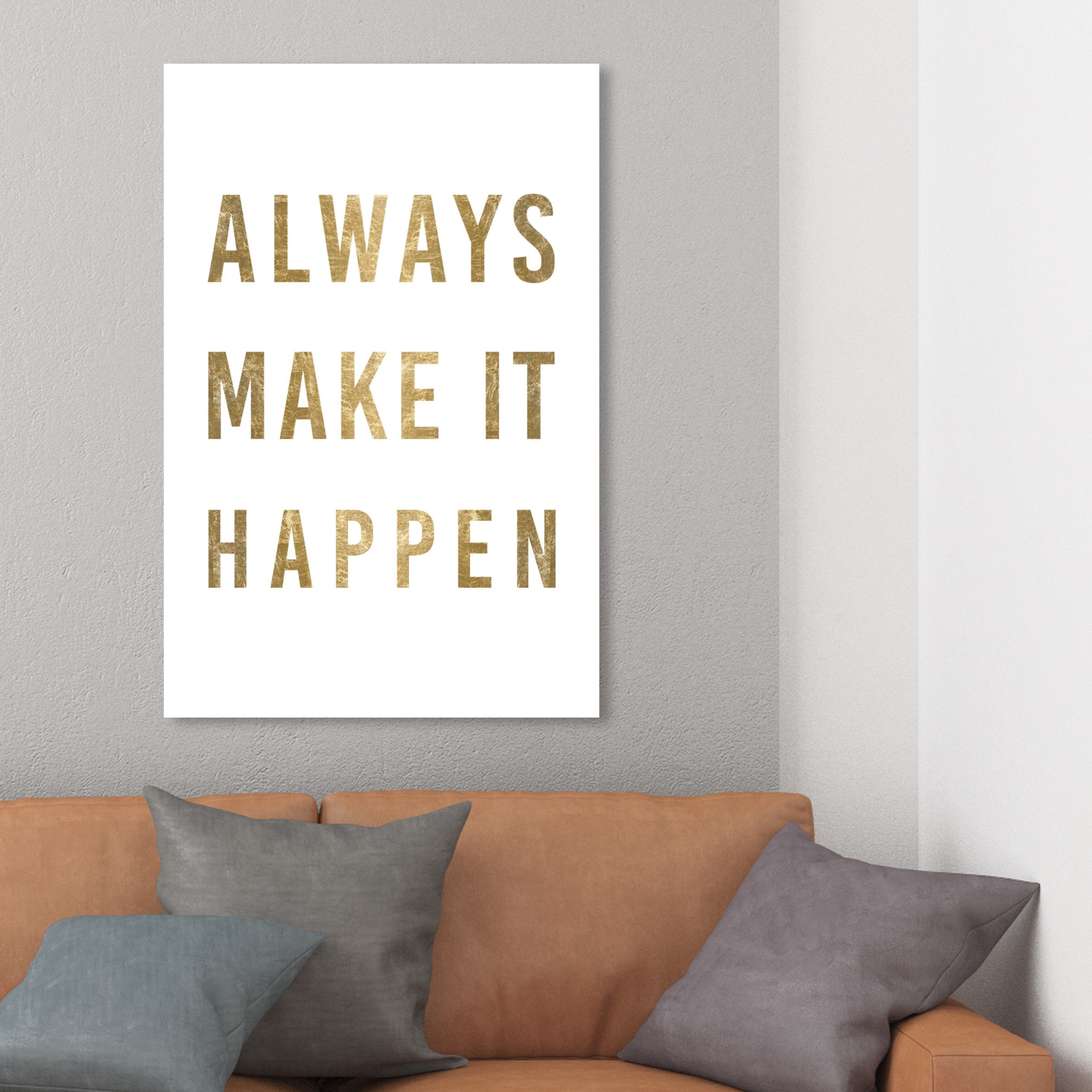 Oliver Gal 'Make it Happen Gold Metallic' Typography and Quotes Wall Art Canvas Print - Gold, White