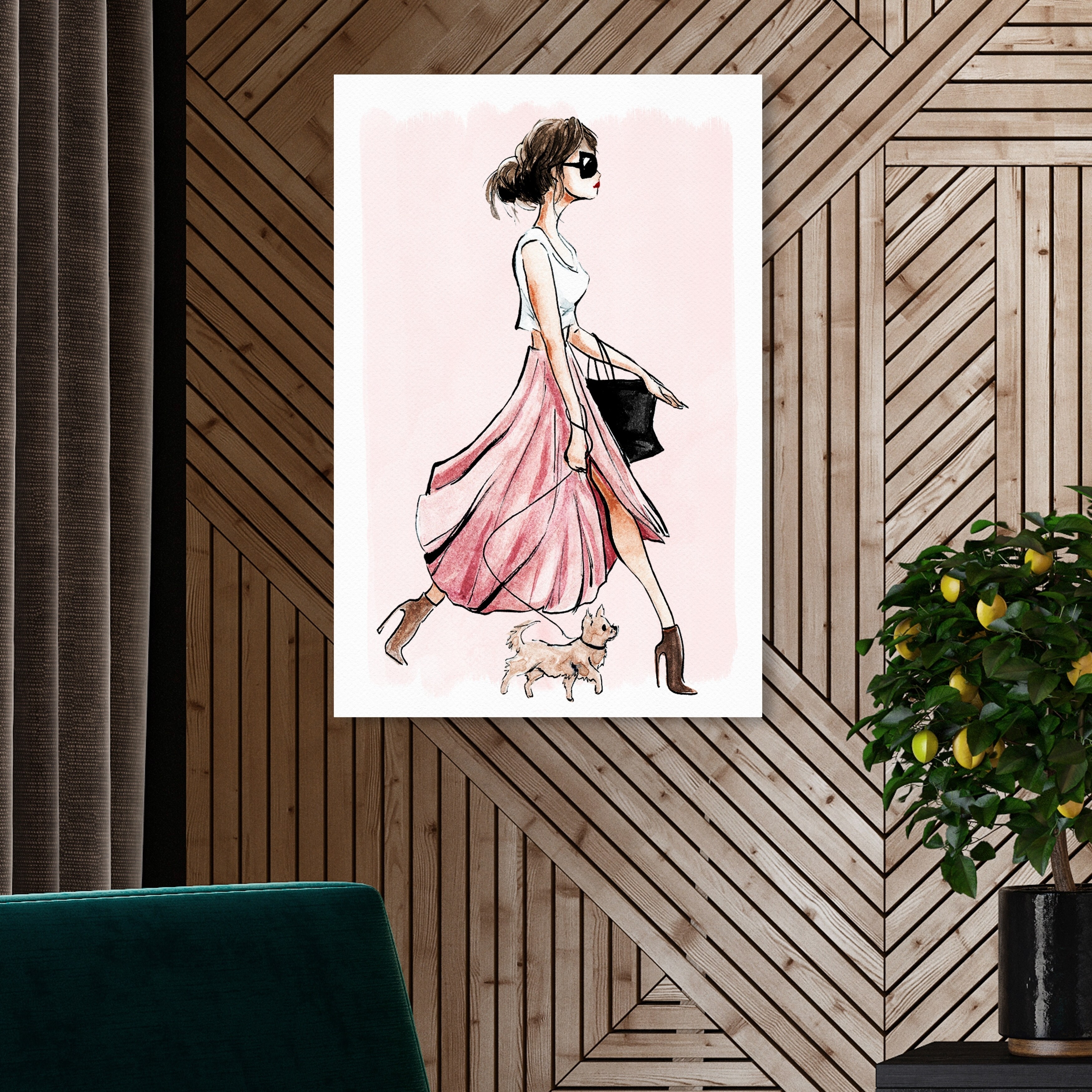 Oliver Gal 'Dog Walk Couture PINK' Fashion and Glam Wall Art Canvas Print - Pink, White
