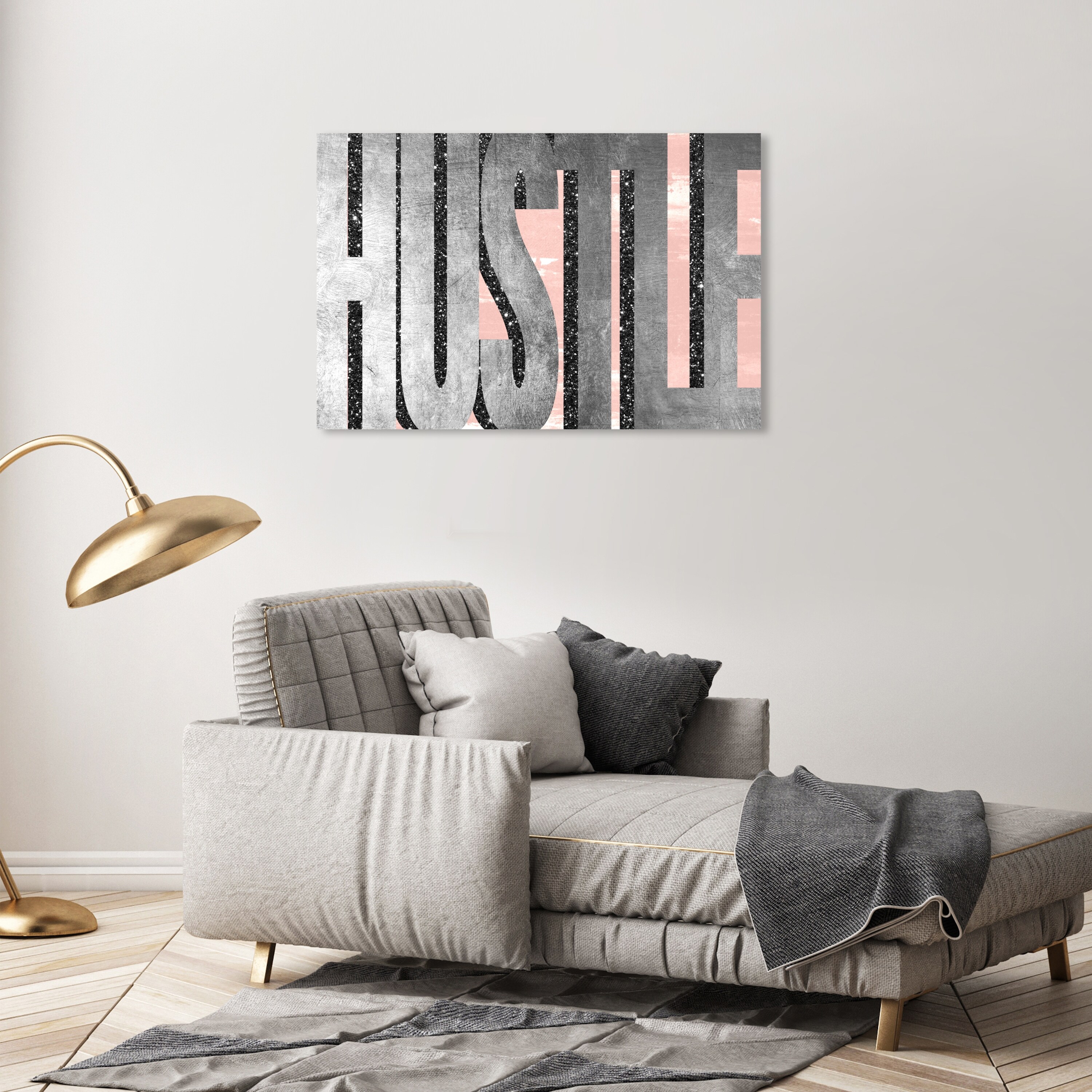 Oliver Gal 'HUSTLE' Typography and Quotes Wall Art Canvas Print - Black, White