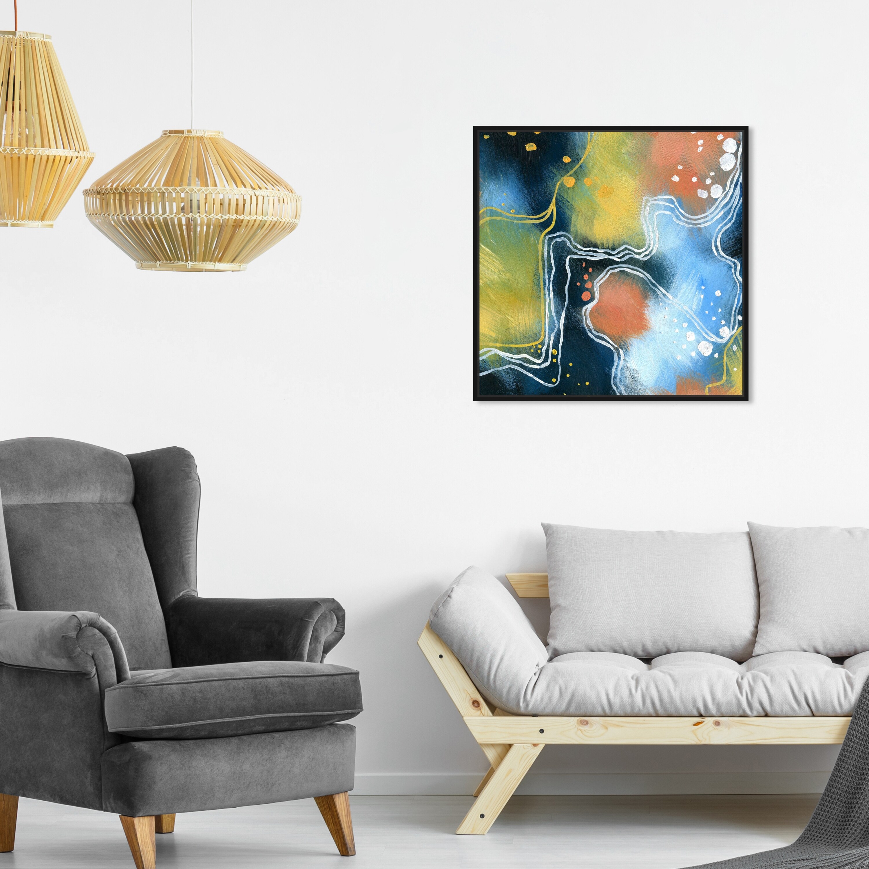Oliver Gal 'In The Cosmos' Abstract Wall Art Framed Canvas Print Watercolor - Yellow, Blue