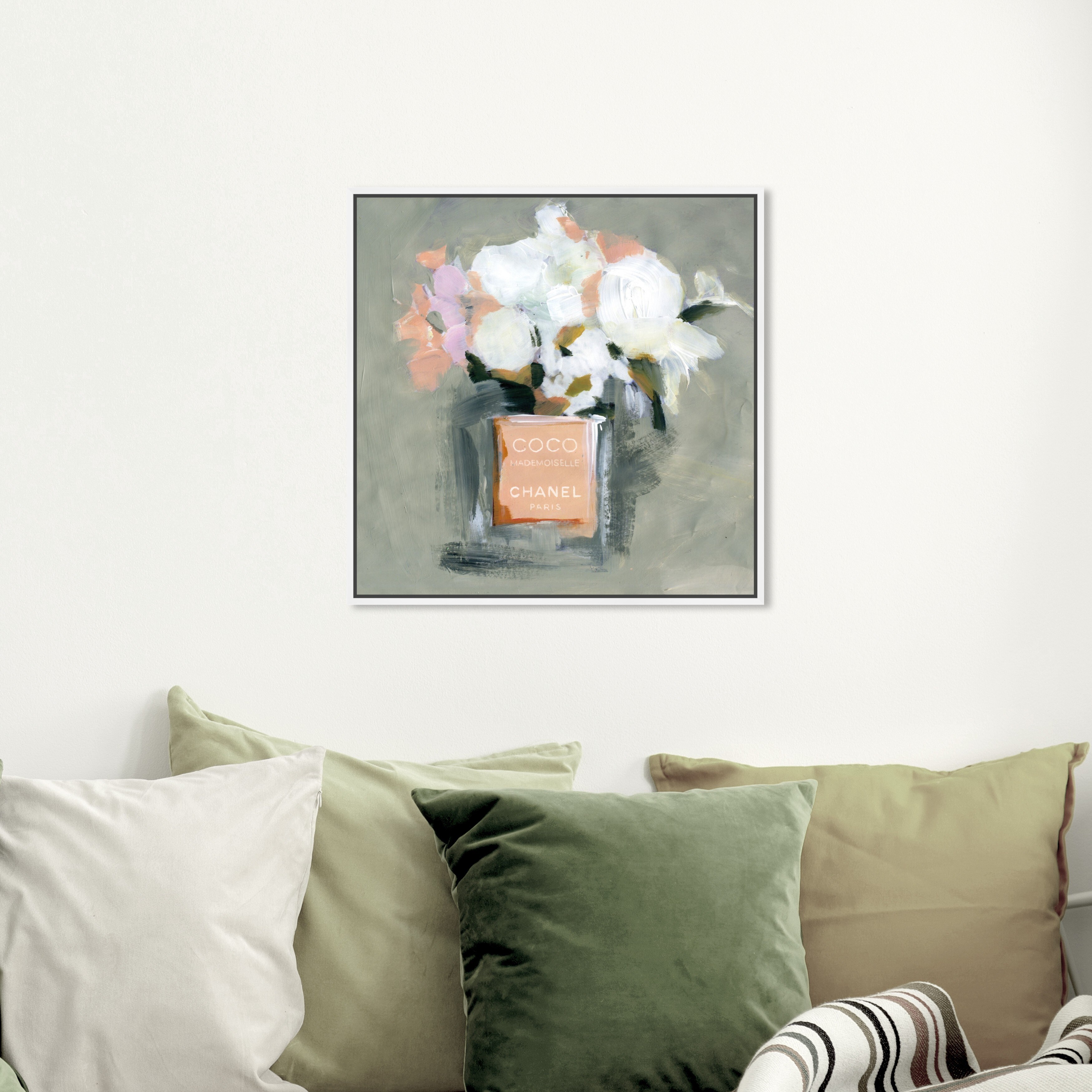 Oliver Gal 'Floral French Perfume Gray' Fashion and Glam Wall Art Framed Canvas Print Perfumes - Gold, Gray