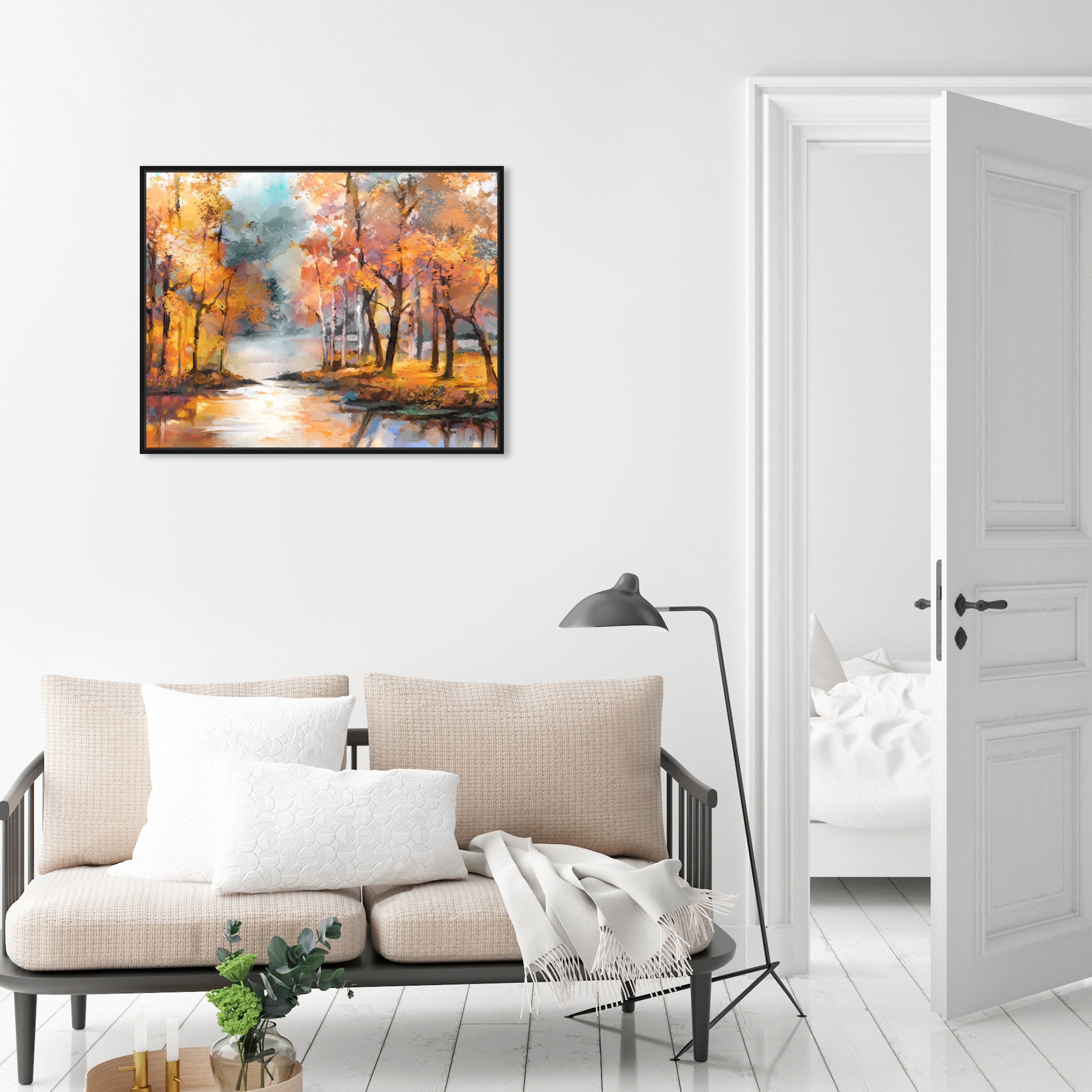 Oliver Gal 'Autumn River' Nature and Landscape Wall Art Framed Canvas Print Forest Landscapes - Orange, Blue