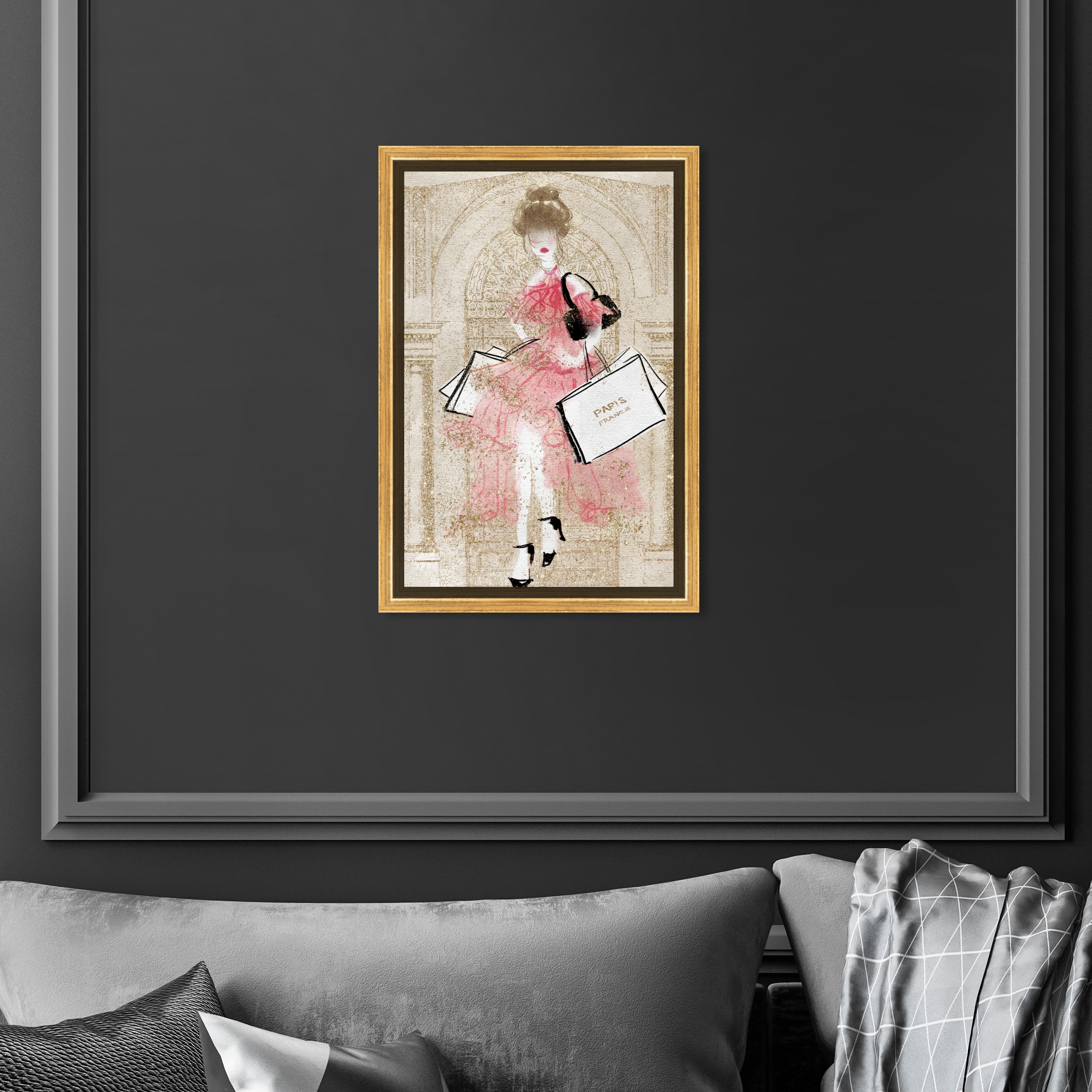 Oliver Gal 'Shopping in Paris Blush Glitter' Fashion and Glam Wall Art Framed Canvas Print Dress - Brown, Pink