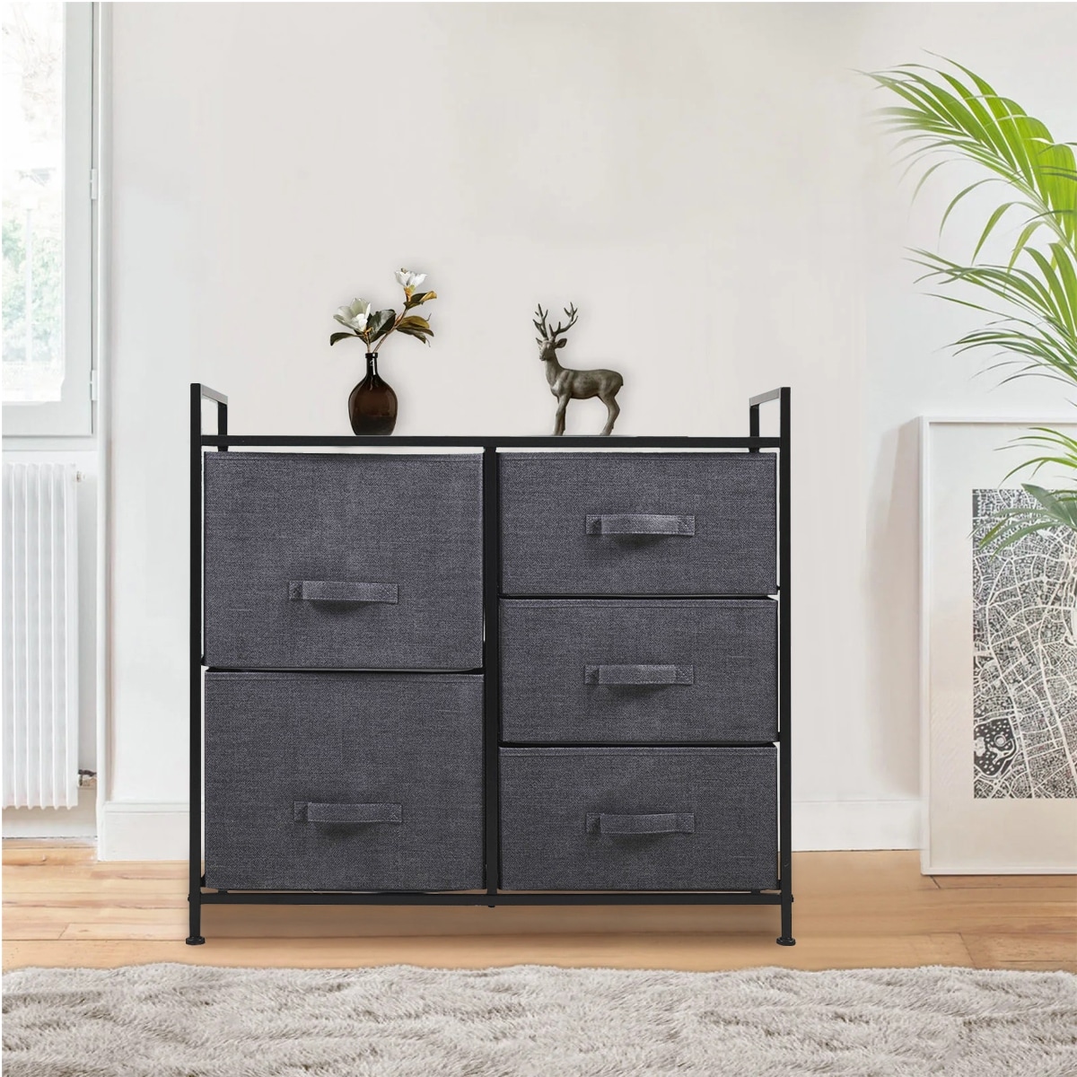 32.7 in. W x 30.3 in. H Black Gray Pull-Out Non-Woven 5-Drawer Storage
