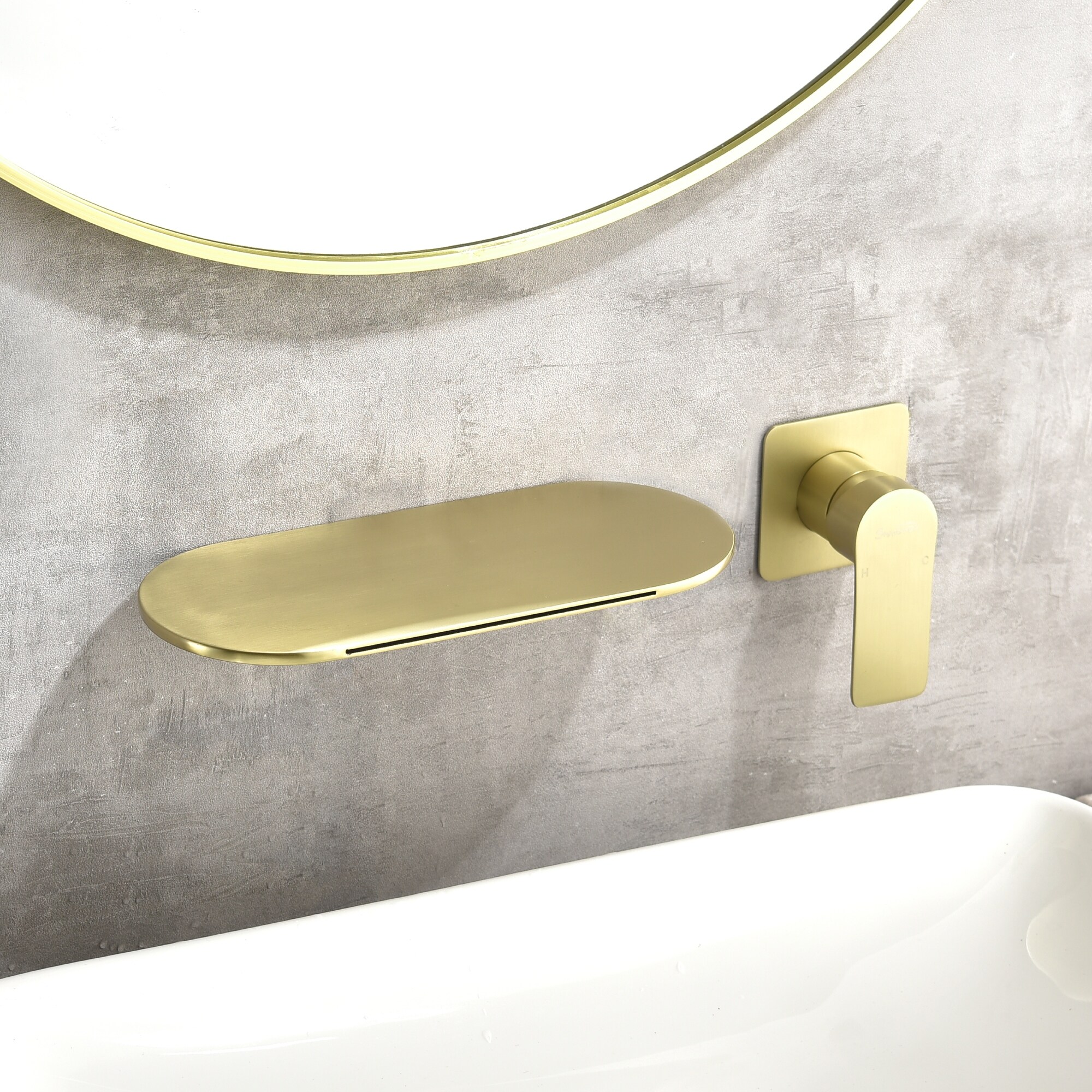 Single Handle Wall Mounted Faucet with Valve in Brushed Gold--Clihome