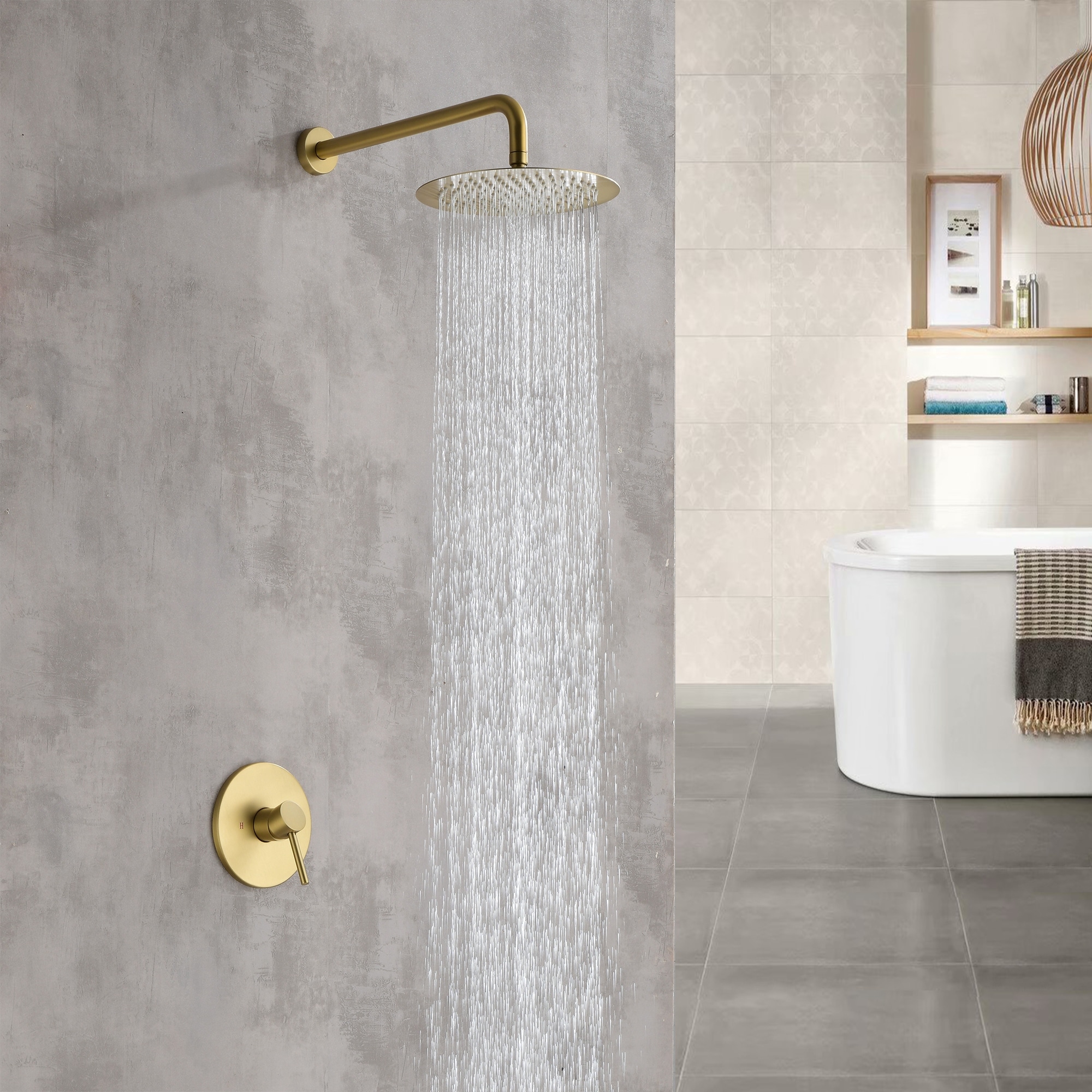 Shower System with Rough-in Valve, Square Rainfall, Waterfall Full Body Coverage, Gold Finish with Brass