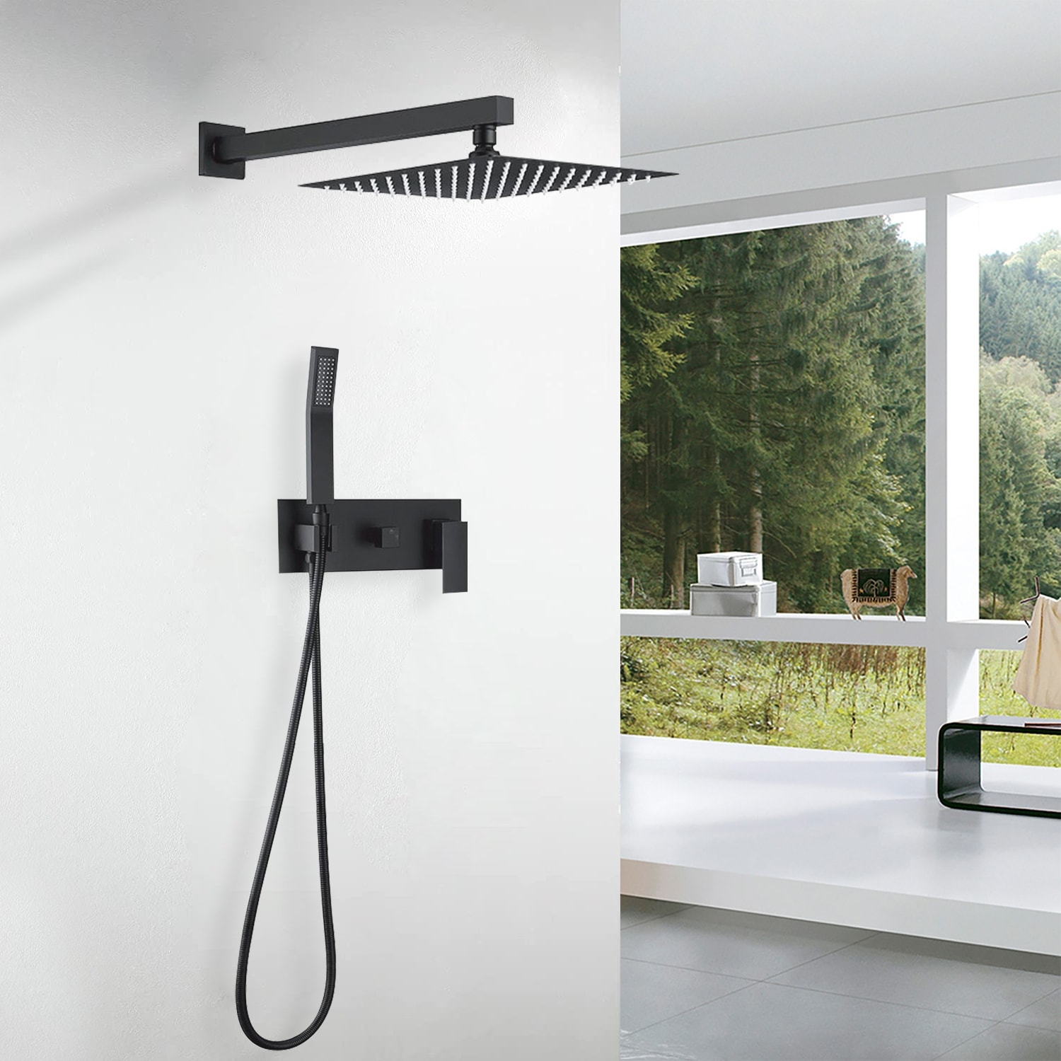 Matte Black Square Showers System With Single-handle (Valve Included)