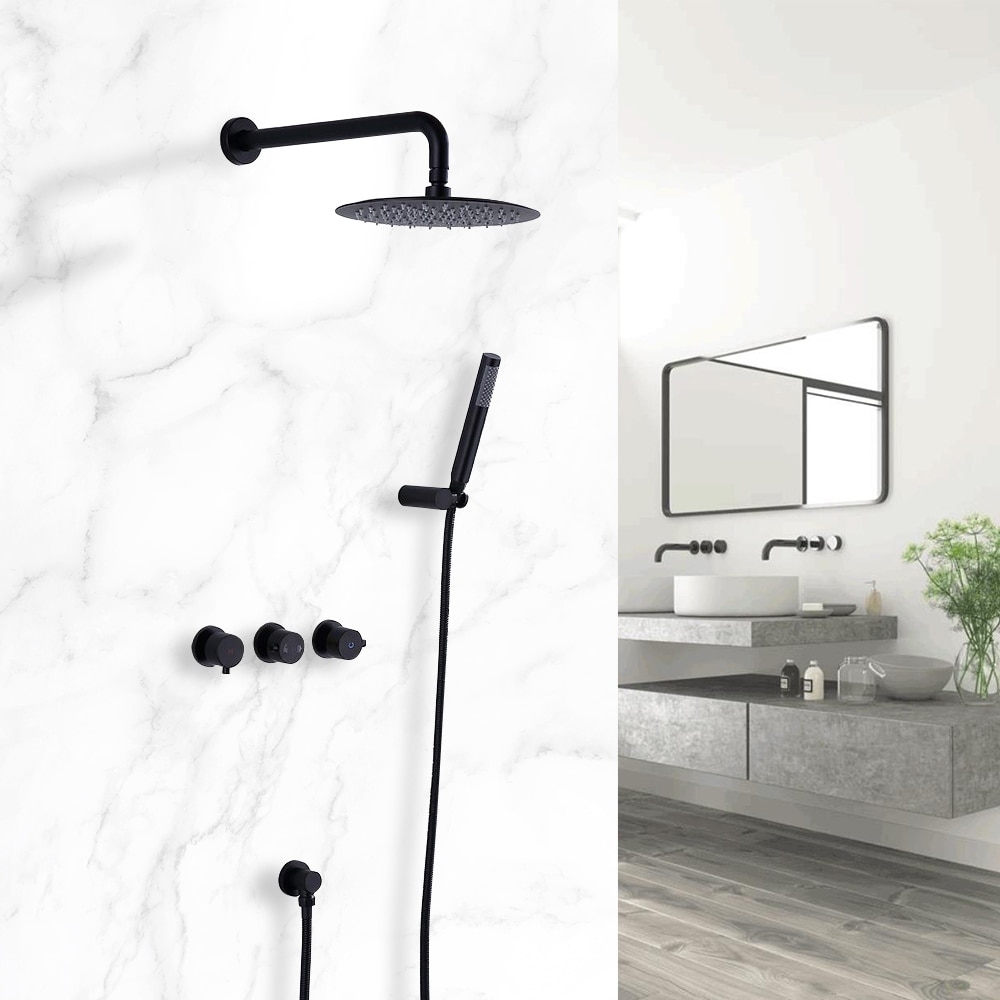 11 Inch Shower Head Stainless Steel Black Wall Mounted Shower System with Brass Body Valve