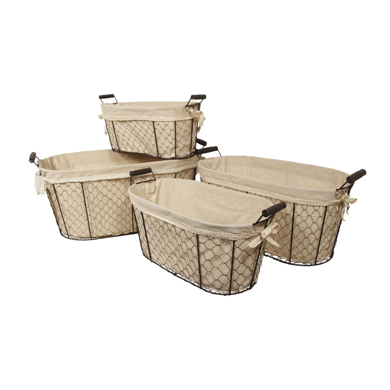 Set of 4 Brown and Beige Lined Traditional Handmade Baskets with Handles 20.5"