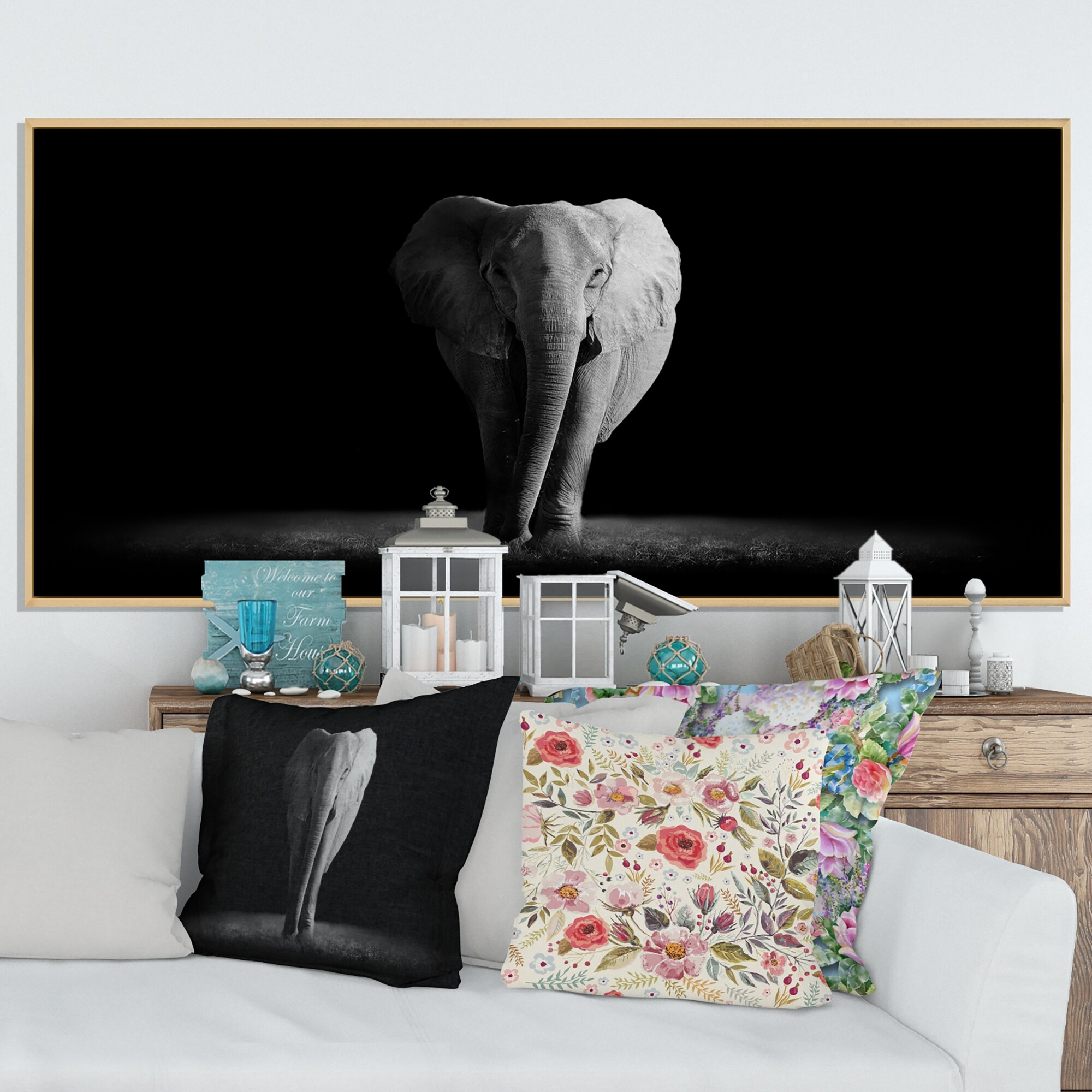 Designart "Elephants In Black And White II" Animals Framed Canvas artwork